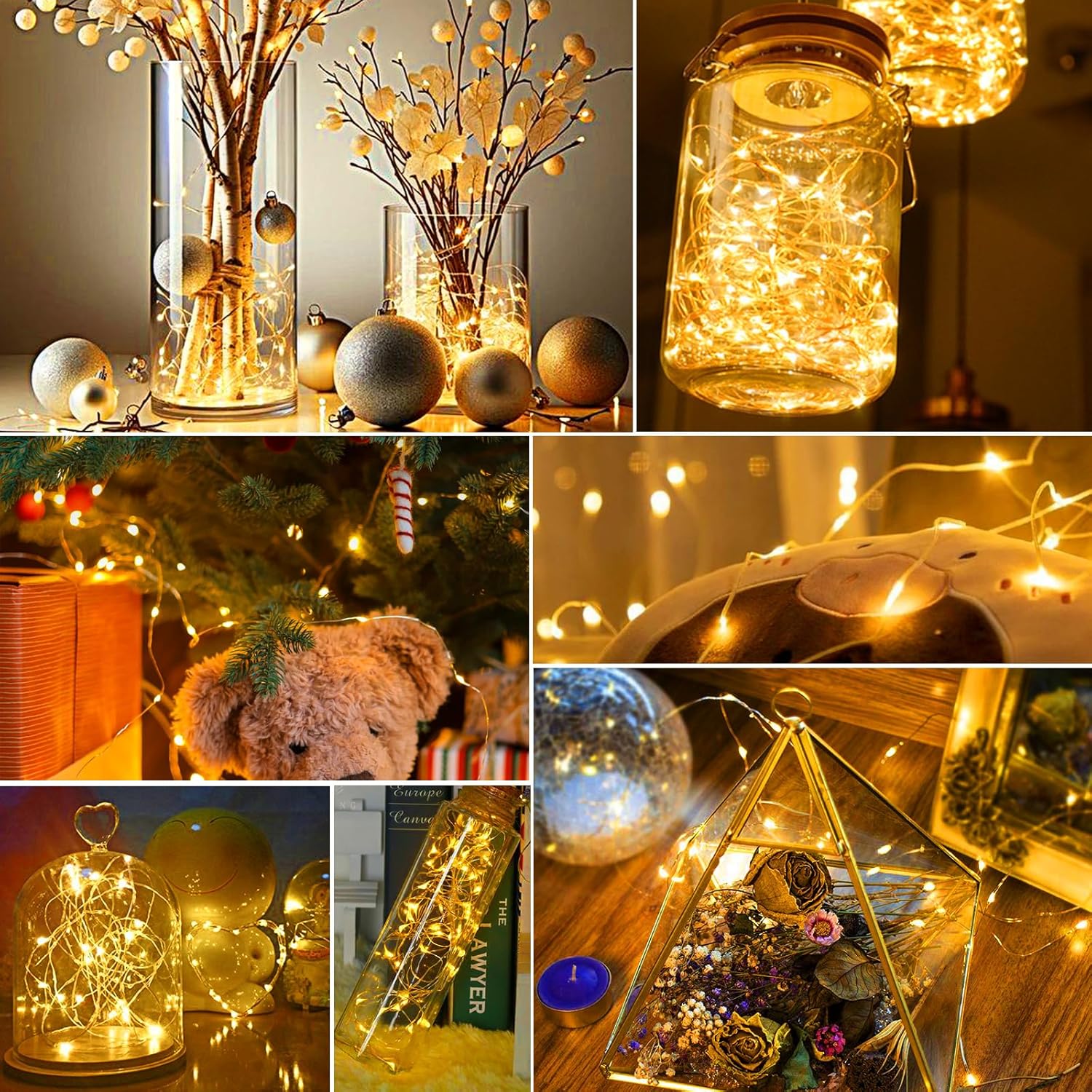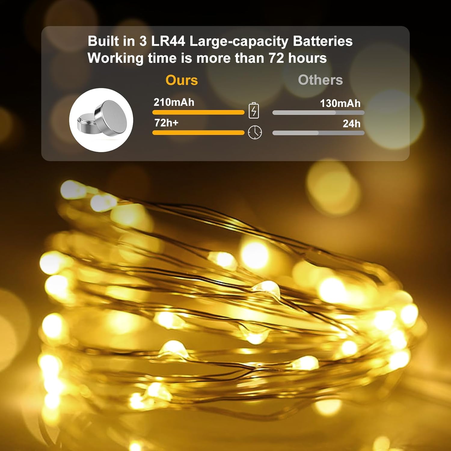 - Battery Operated LED Fairy Lights: Includes 8 packs of fairy lights, each with 20 mini LEDs on a 7 ft silver-plated copper wire for durability and flexibility; 4-inch LED spacing ensures even and beautiful illumination for a magical effect; Powered by LR44 batteries with up to 72 hours of battery life for long-lasting use
