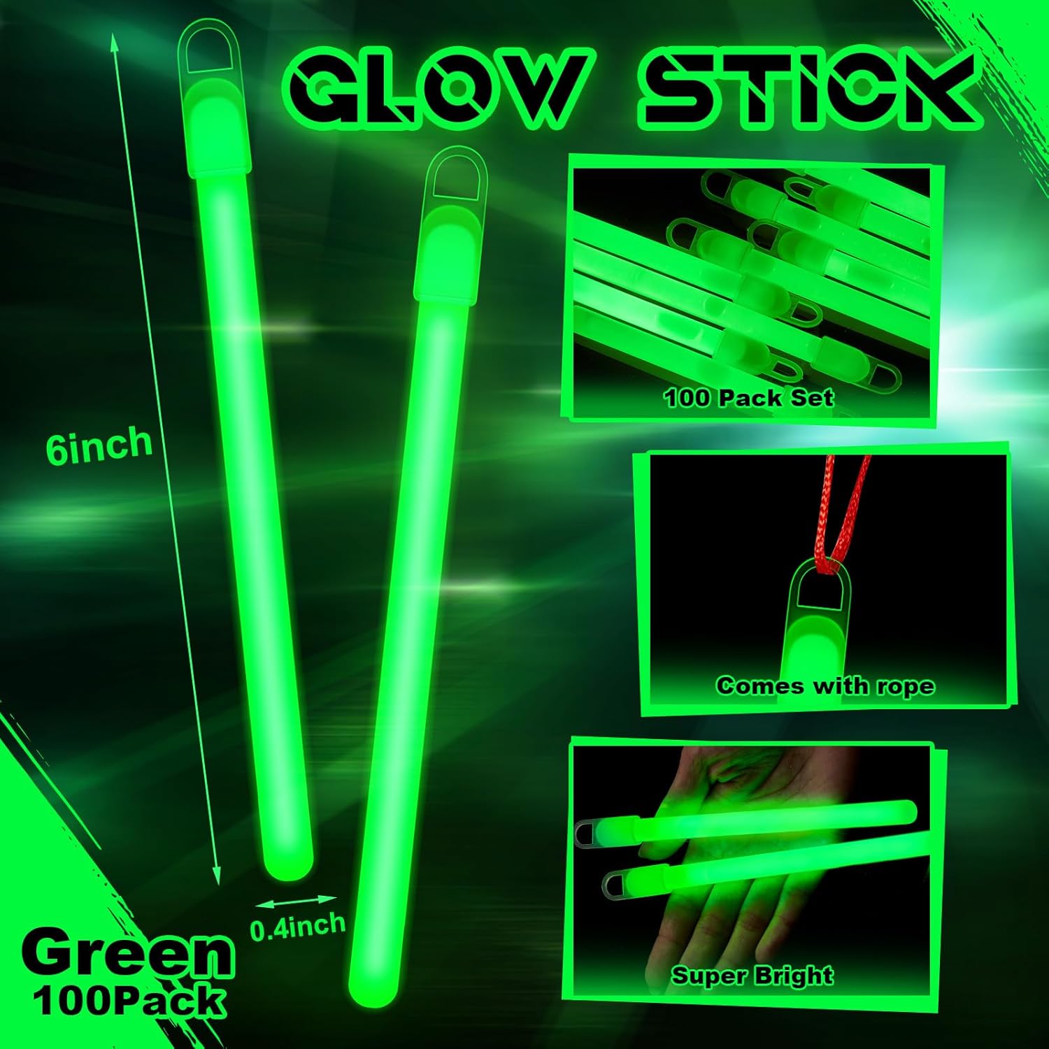 - What You Can Get: you will receive 100 stick lights, each with hook stick and 1 lanyard; Our glow sticks allow you to feel the warmth of light wherever you are. Notice: First of all, due to the characteristics of fluorescent sticks, white fluorescent sticks will have a bluish cast. If you mind, please do not buy white. Secondly, due to the material characteristics of fluorescent rods, green has the highest brightness. If you need a high-brightness fluorescent rod, please choose green