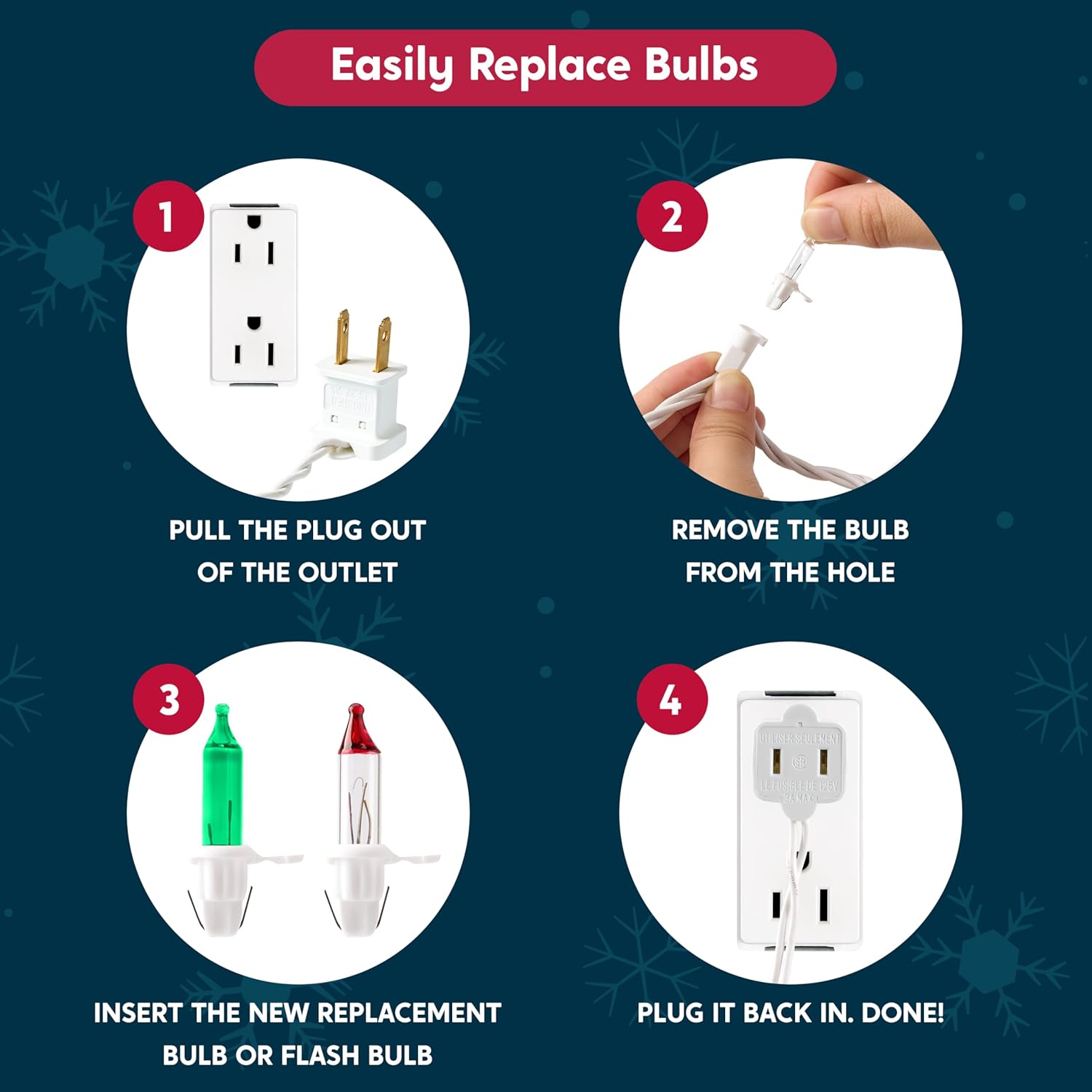 - All-Weather Durability & Independent Bulb Design.Engineered for reliability, these individually wired bulbs ensure that if one burns out, the others remain lit! Constructed with weather-resistant materials to withstand outdoor elements, and includes replacement bulbs and fuses for convenient maintenance—perfect for year-round decorative use.