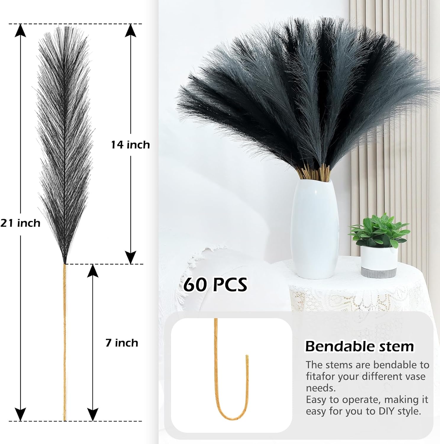 60 Pcs Pampas Grass Decor 21.7 Inch Faux Light Grey and Dark Grey Pampas Grass Bulk Artificial Dried Flowers Small Vase Filler Pompas Grass.