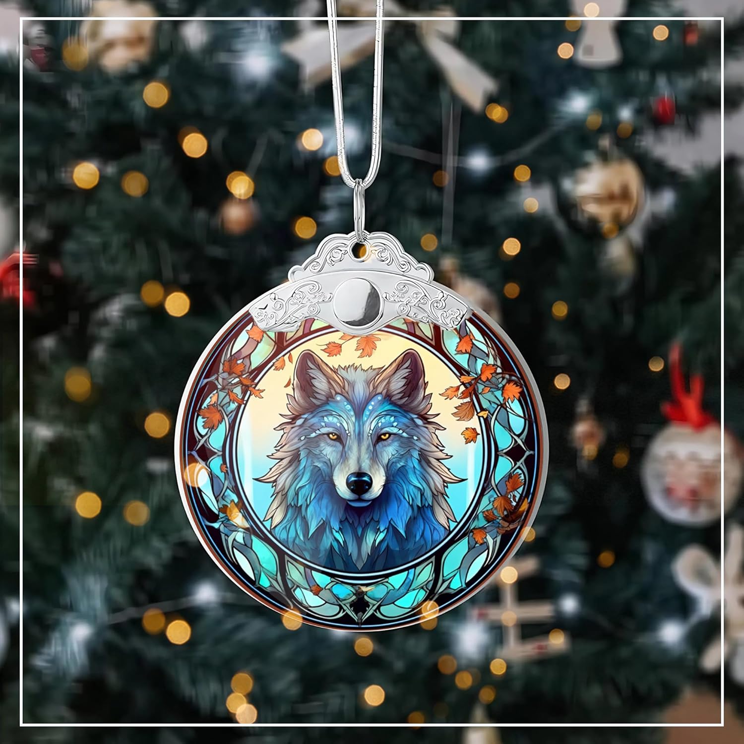 2025 Ornament Stained Glass Effect, Big 4 Inch Acrylic Hanging Art, Tree Ornaments, Holiday Decoration, Car Interior Accent, 2025 Christmas Ornament (Mystic Wolf)