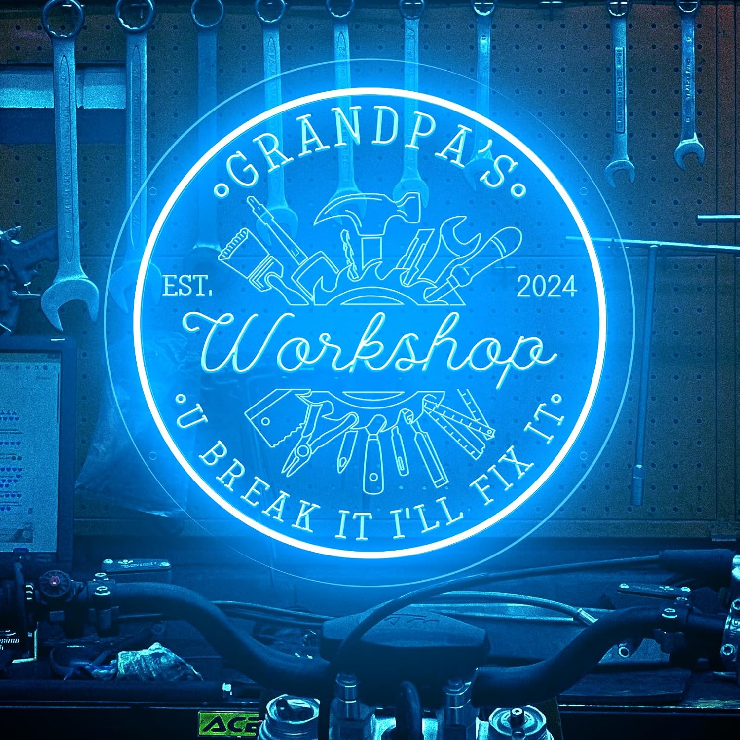 Custom Garage Neon Sign for Workshop, Personalized LED Wrench Tool Signs for Men Dad Gifts, Dimmable Customized Garage Light Up Signs for Carport Repair Shop Carbarn Man Cave Business Wall Decor