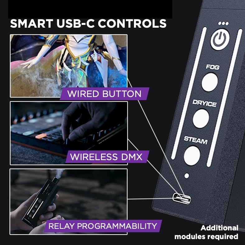 - USB-C CONTROL FOR CUSTOMIZATION: Includes USB-C connectivity, compatible with DMX and wired button modules (sold separately) for precise smoke control. Customize your haze effects to meet specific production needs.