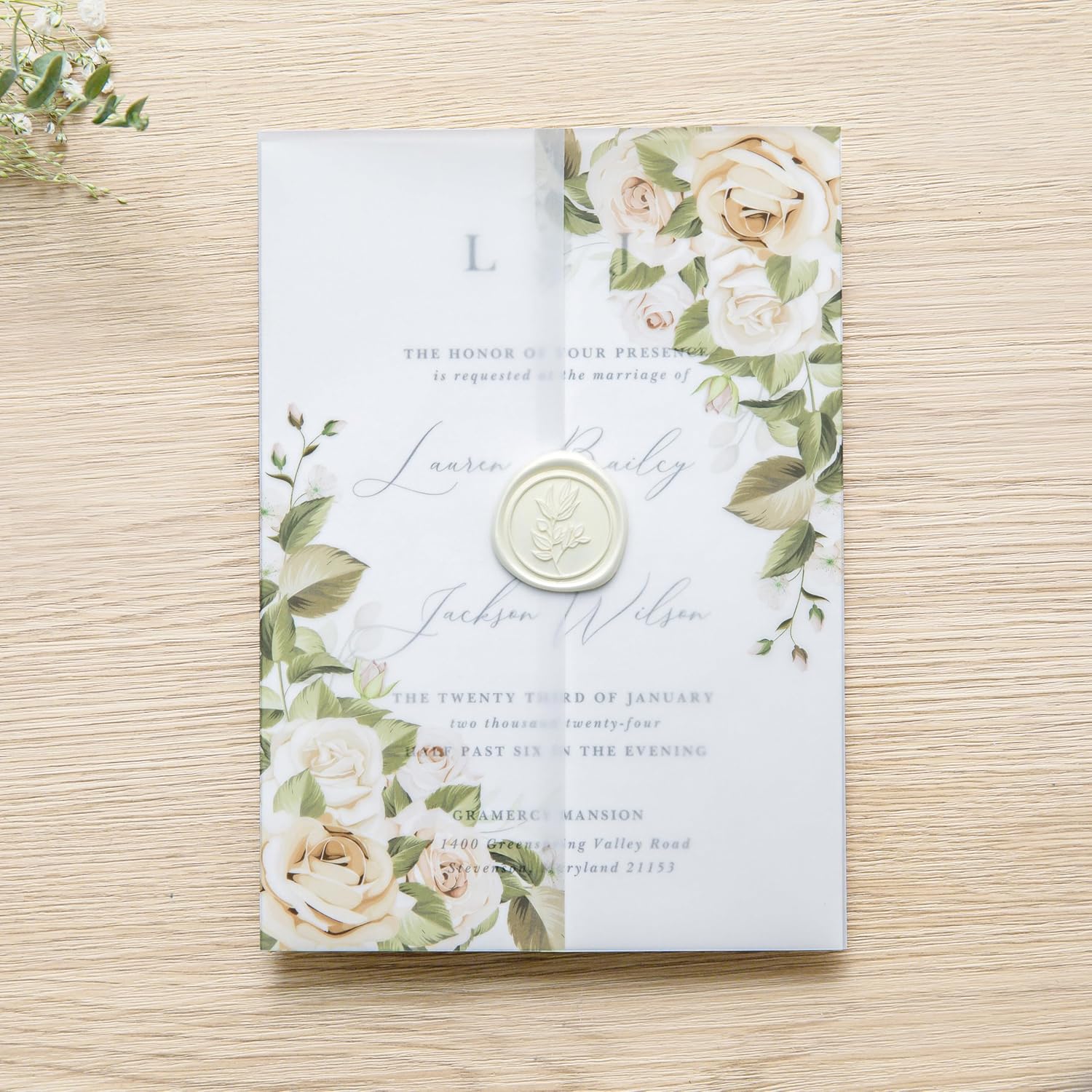 - 【What's Included】: A bulk quantity of 50 pcs champagne flowers printed pre-folded floral vellum jackets for 5x7 invitation cards
