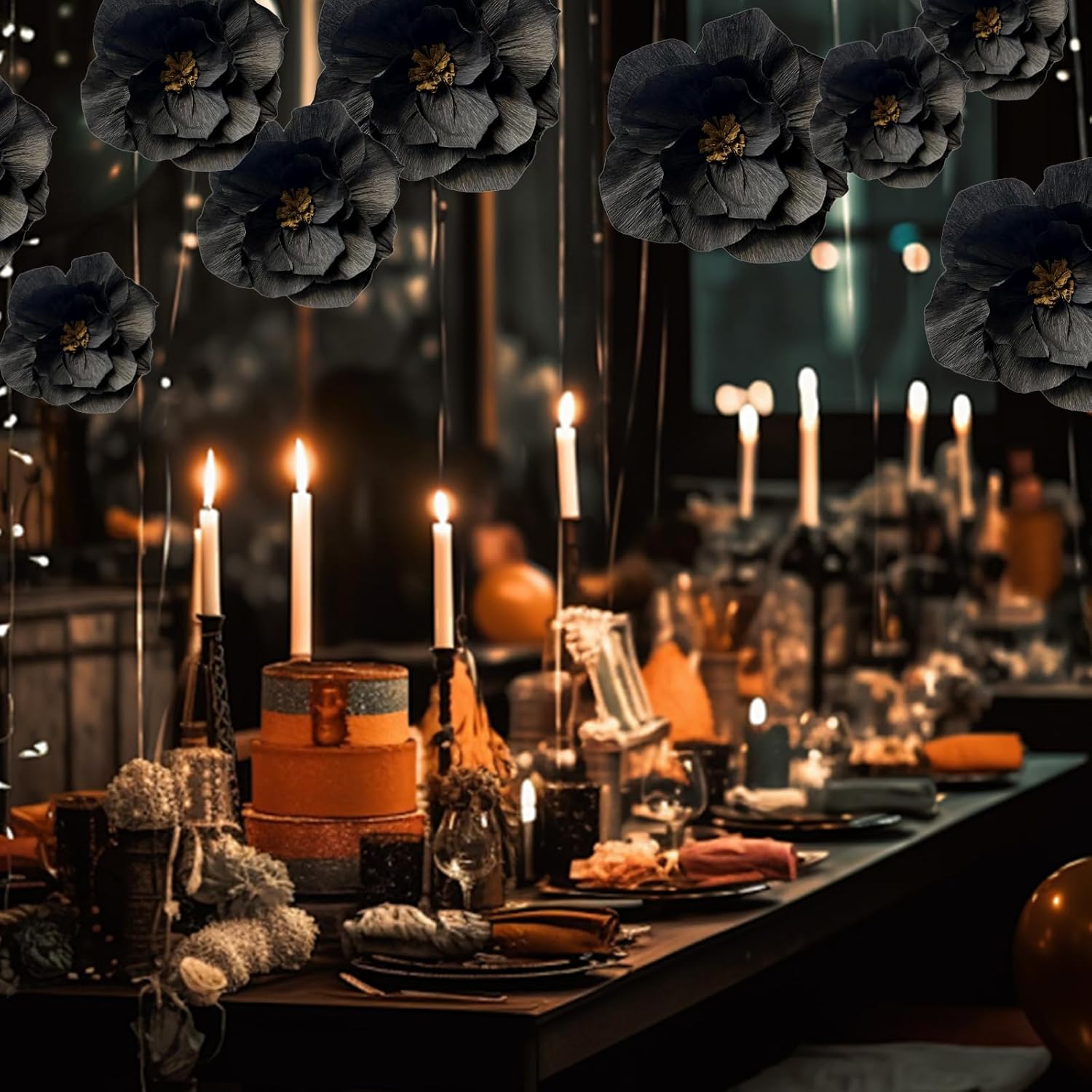 - Crepe Paper Flowers: Total 9pcs black paper flowers in 3 sizes 12”, 10”, 8”.