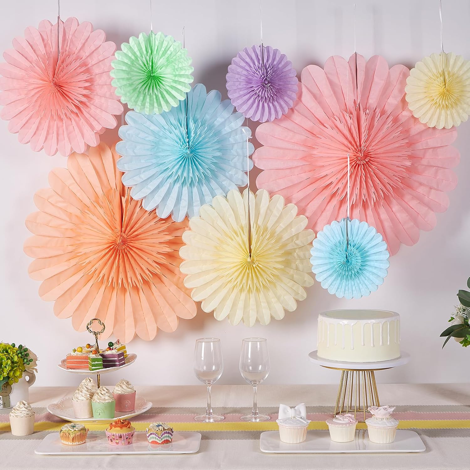 - Vibrant and Fun Party Decor:This set includes 9PCS of pastel-colored paper fans in beautiful shades of macaron, perfect for creating a playful, cheerful atmosphere at any party or event. Ideal for birthday parties, baby showers, bridal showers, Easter celebrations, or classroom/home decoration.