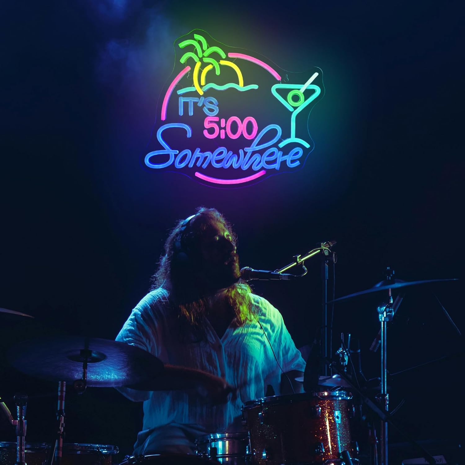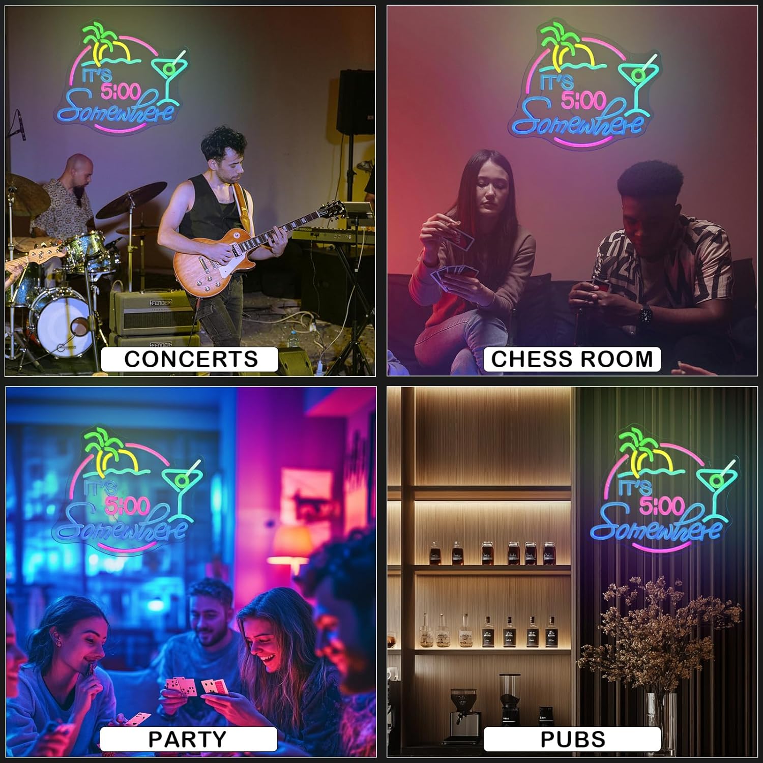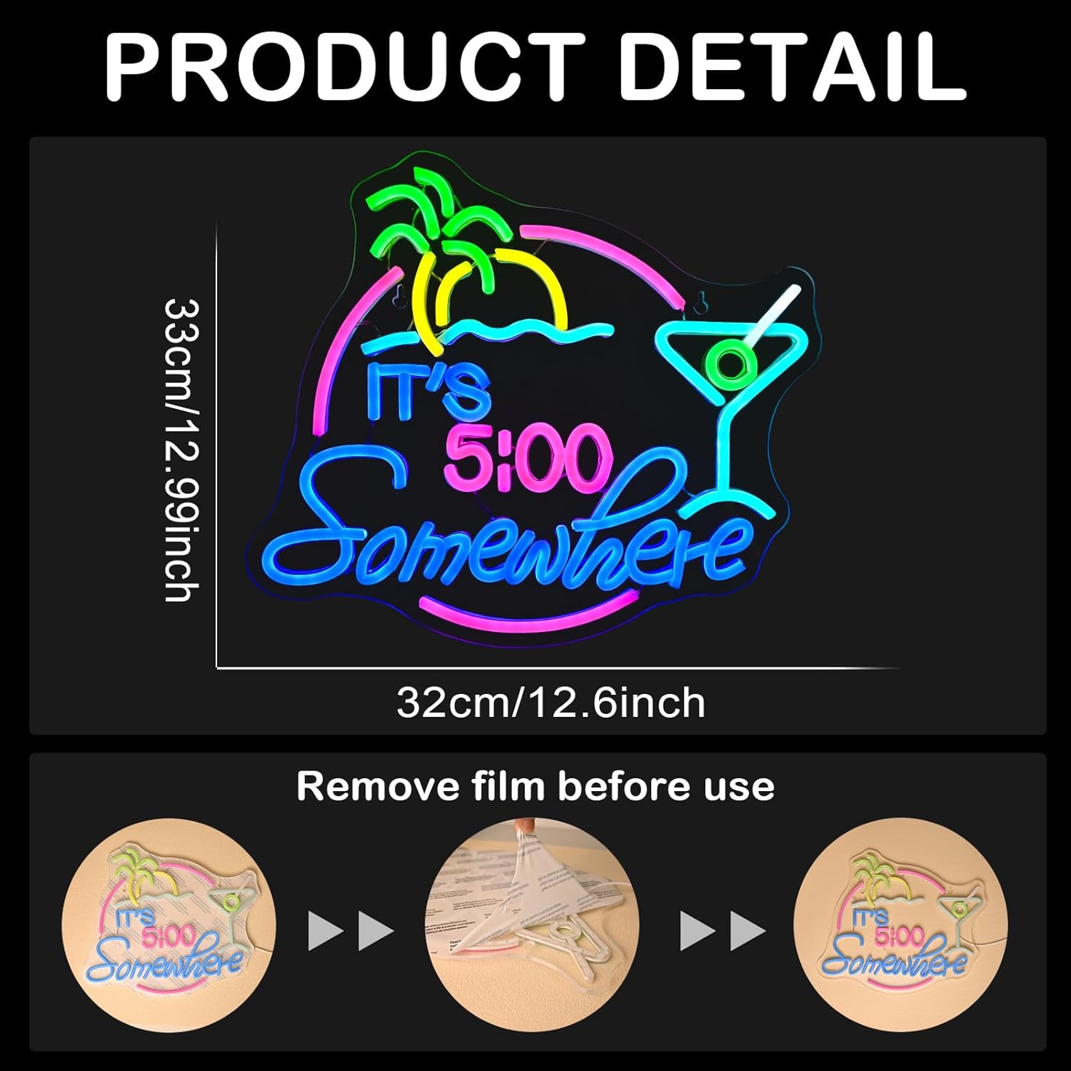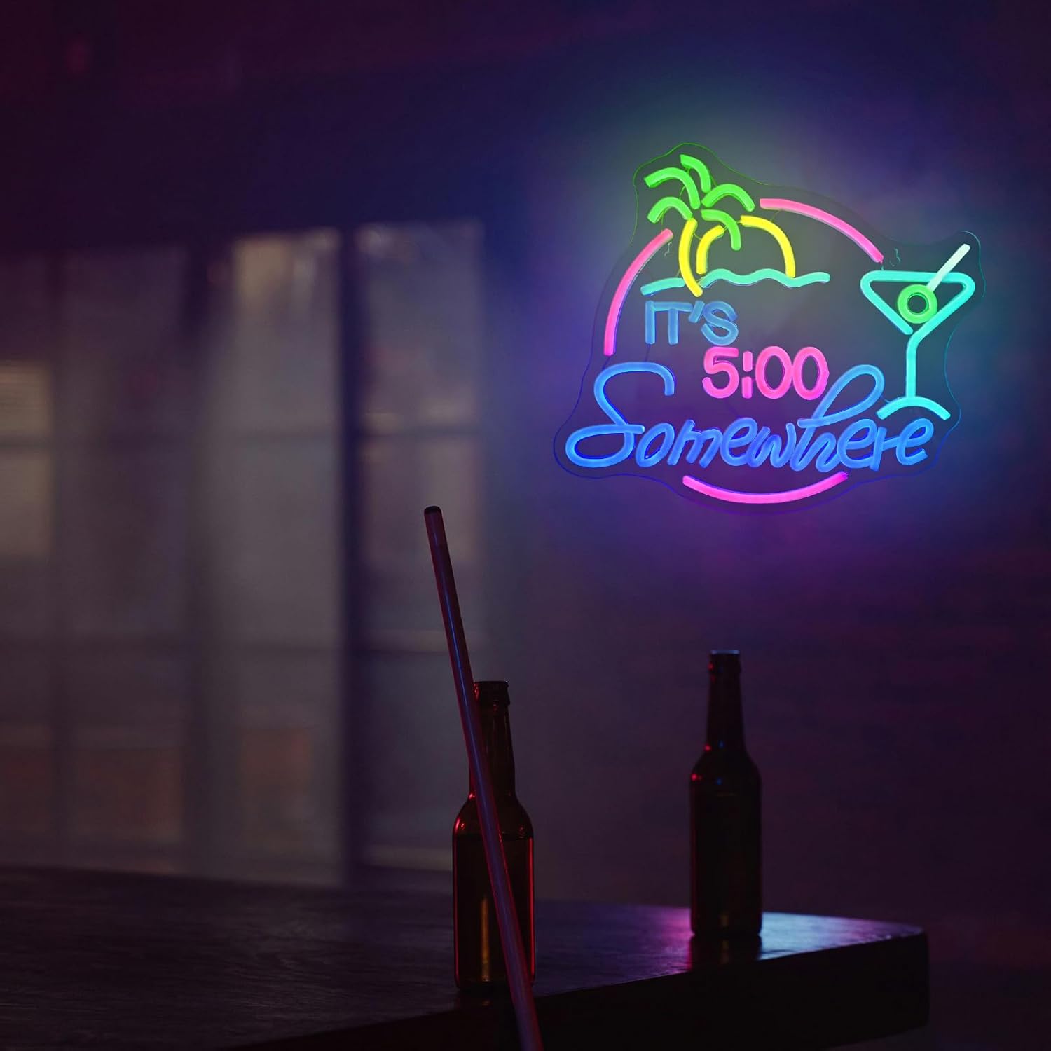 It's 5:00 Somewhere Neon Sign, USB Powered LED Neon Sign for Wall Decor,Dimmable, 5V/2A, for Home, Party, Gift, Bedroom, Man Cave, Bar, Beer Garage, Secrect Space