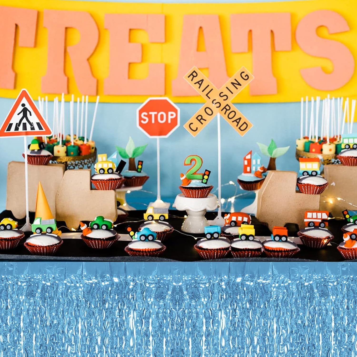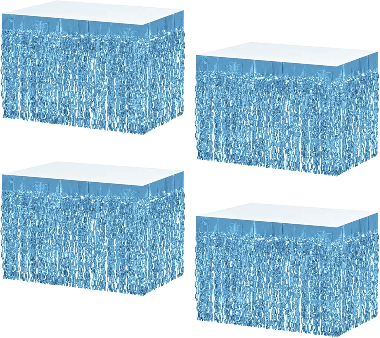 4P Wavy Metallic Tinsel Foil Fringe Table Skirts for Rectangle Tables Backdrop Garland Curtains for Parade Floats Wedding Birthday Parties Decoration Graduation 2025 Christmas (Light Blue)