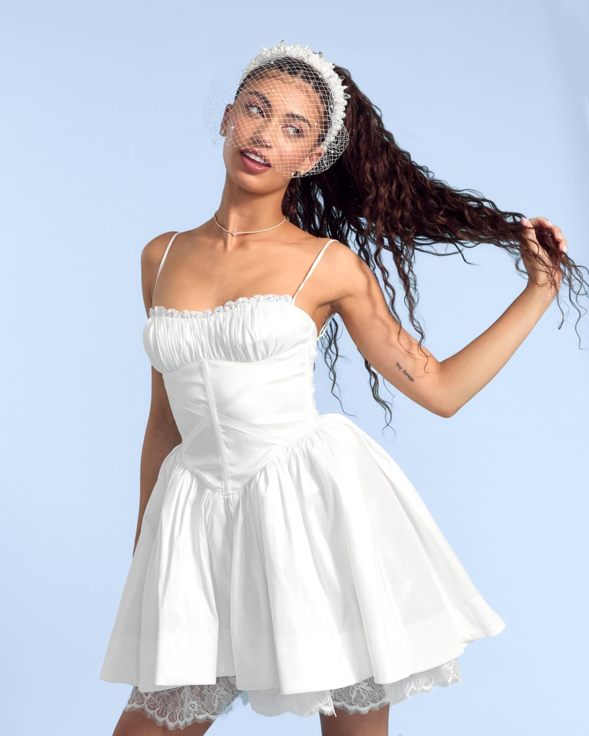 - Chic & Sweet: This birdcage veil and white beaded headband with pearls and clear crystal detailing is the perfect finishing touch for any bridal look, from engagement parties to bachelorette celebrations.