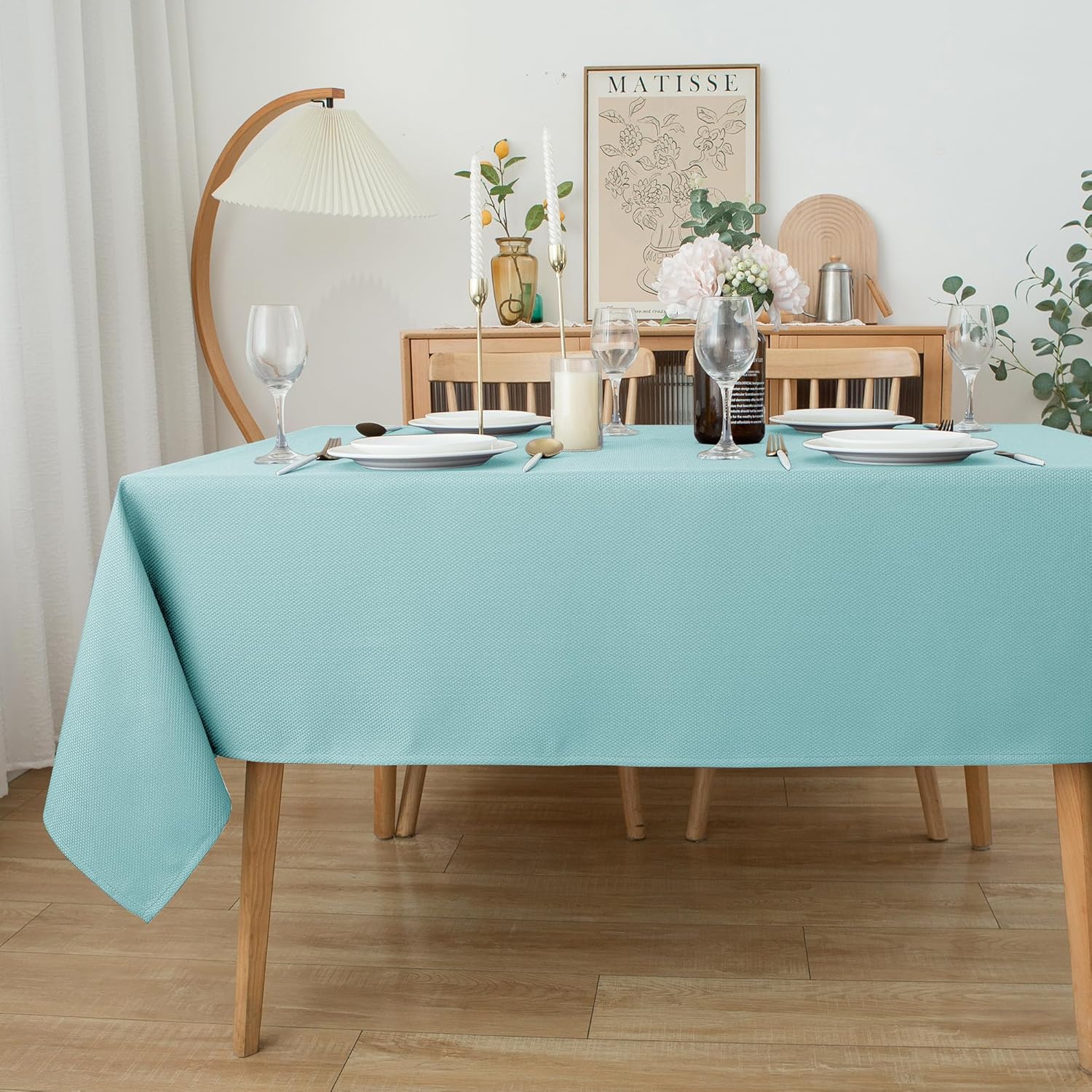 - Water Resistant & Easy Care: Featuring excellent water-resistant properties, this tablecloth ensures liquids and spills bead up on the surface. Simply wipe clean with a damp cloth for quick and effortless maintenance, making cleanup a breeze