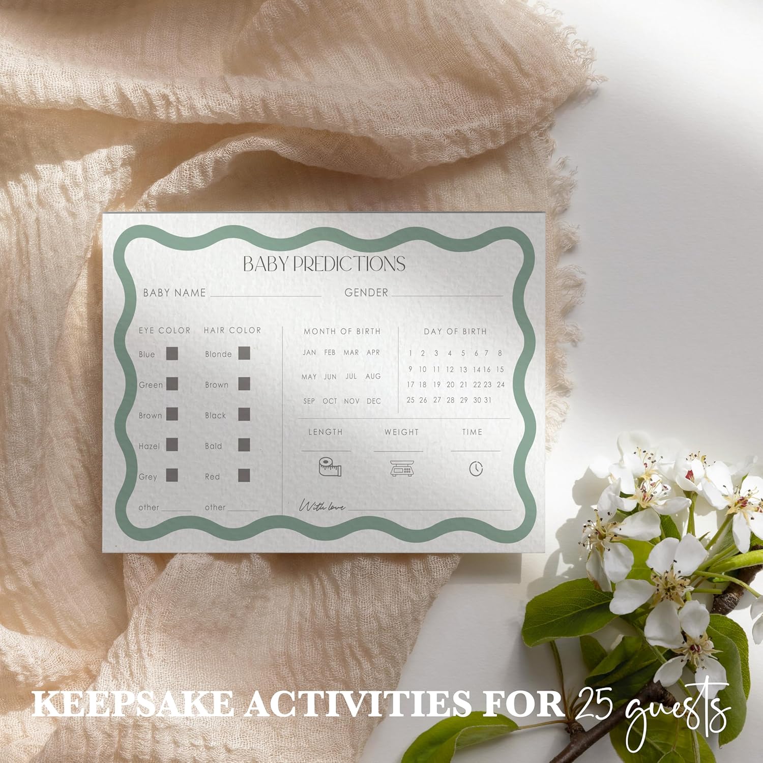 Advice For New Parents Baby Shower, Baby Predictions & Advice Cards For Baby Shower Games Activities, Wishes for Baby, 25 Double-Sided Thick Cards – Sage Green A09