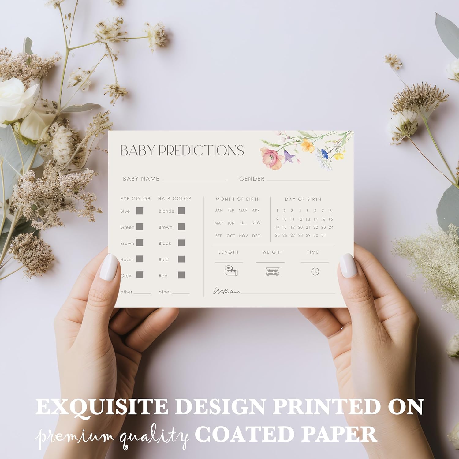 - Simple, Elegant Design: Minimalist style that looks great and works perfectly for baby shower activities and games