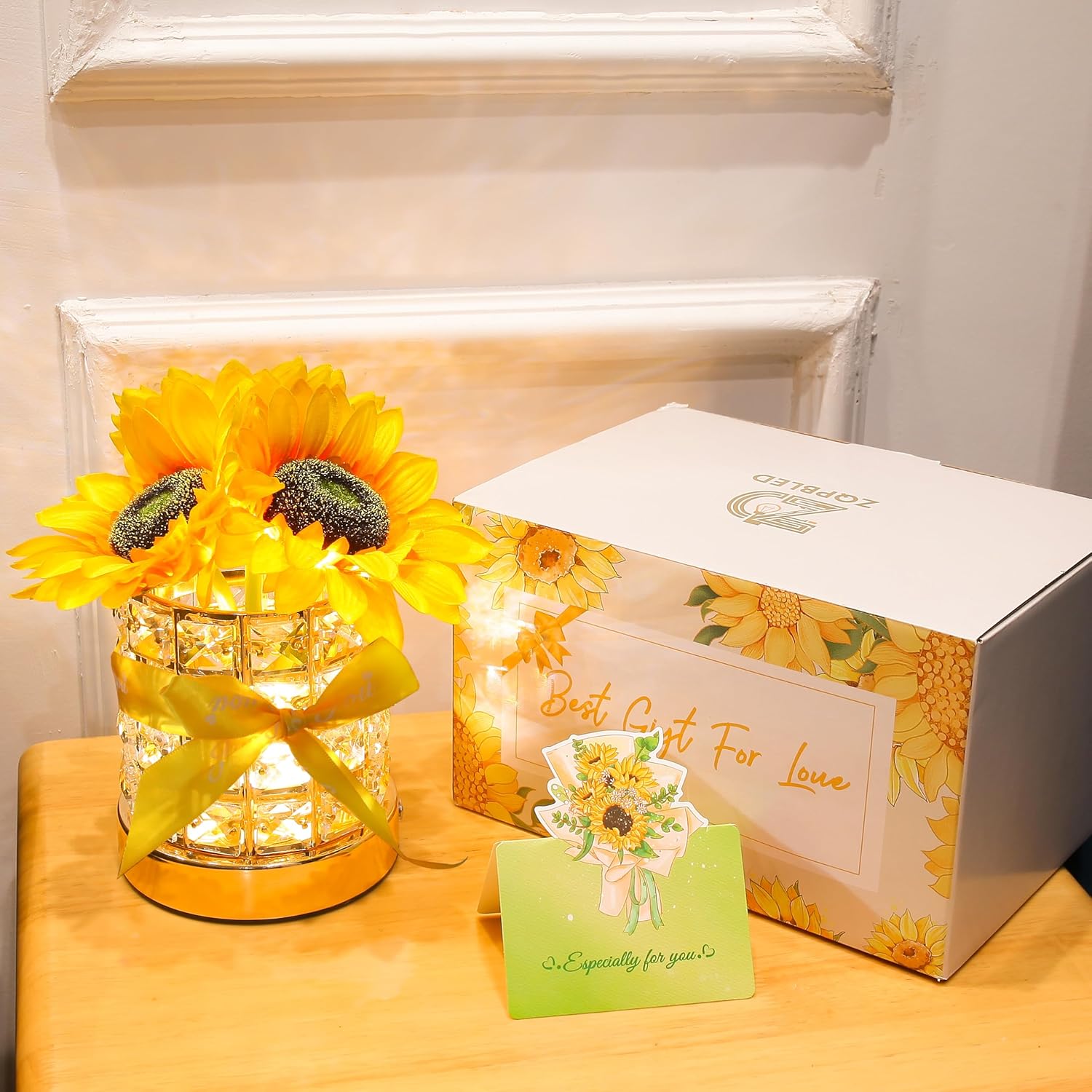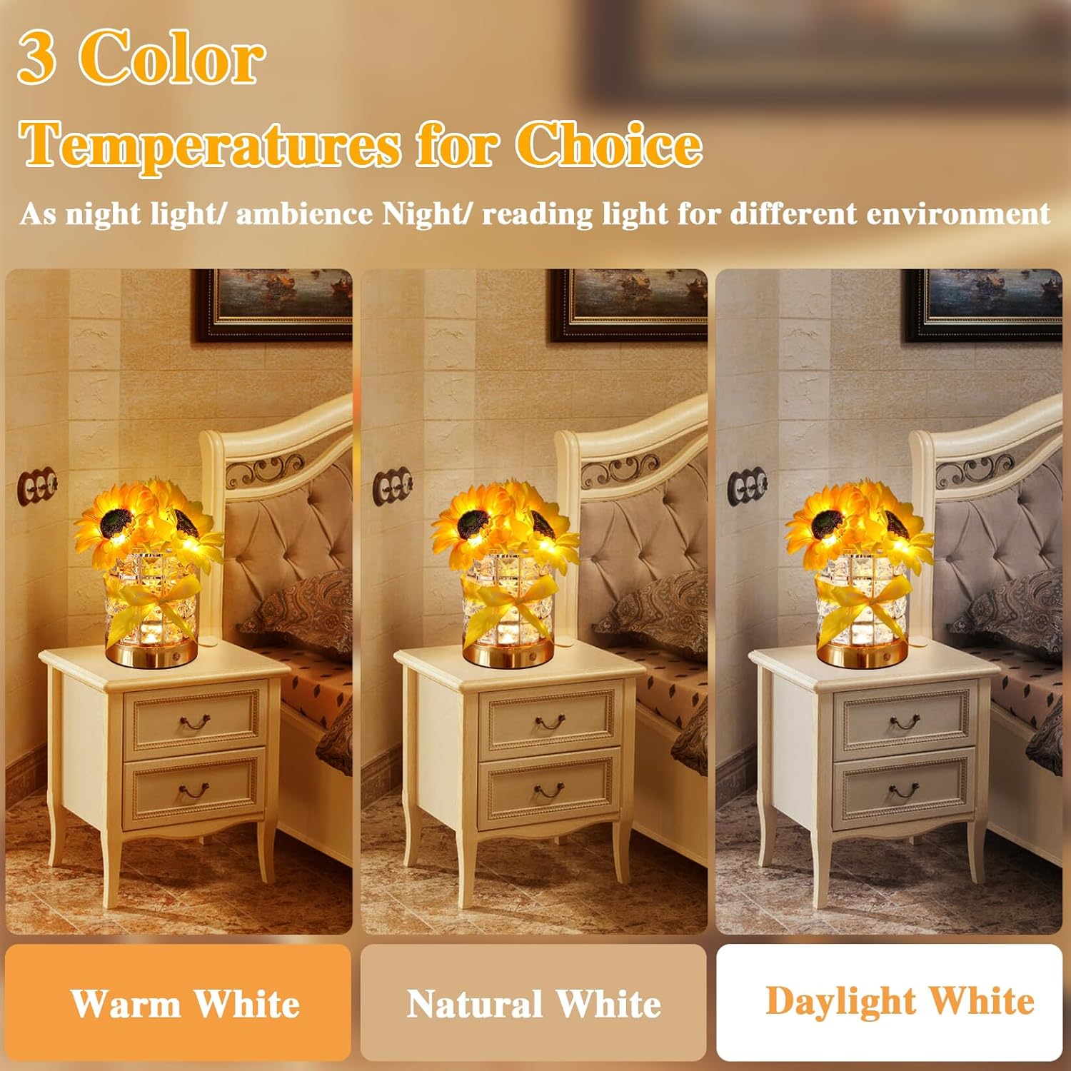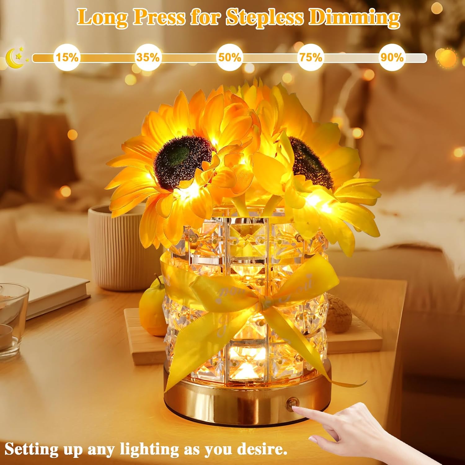 Birthday Gifts for Women/Mom Sunflower Cordless Table Lamp,3 Color Crystal Lamps Touch Bedside Lamps Infinitely Dimming with USB Charge Small Night Light,Nightstand Lamp for Bedroom (Round)
