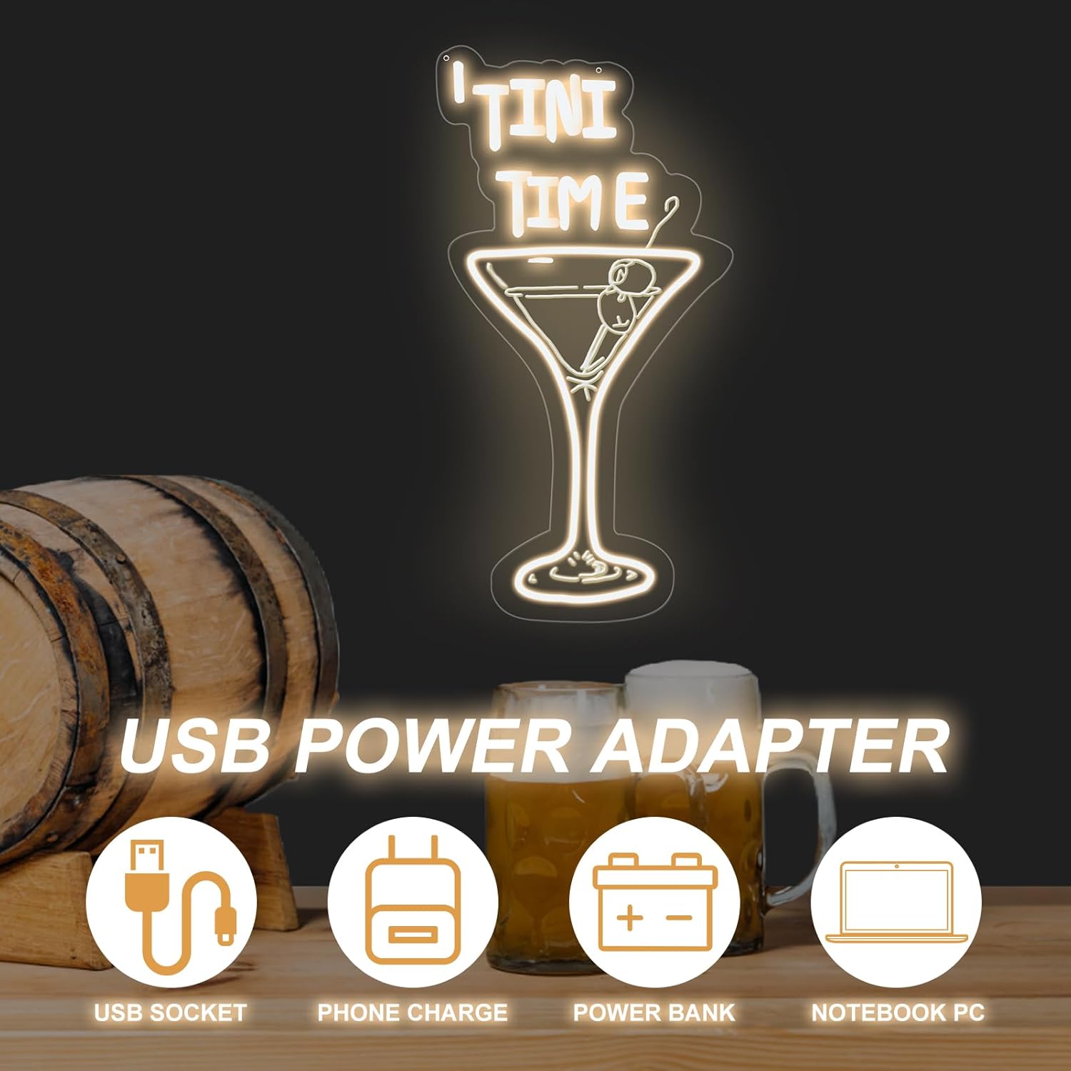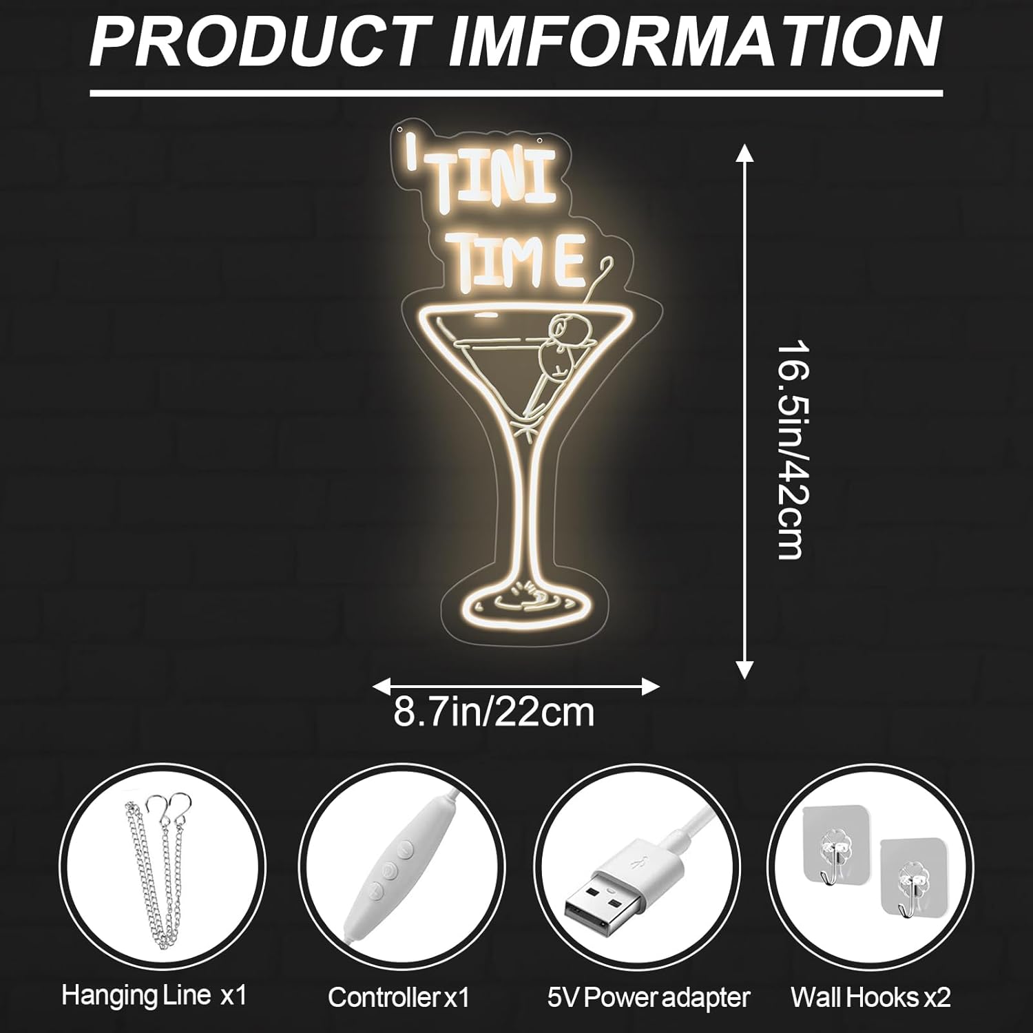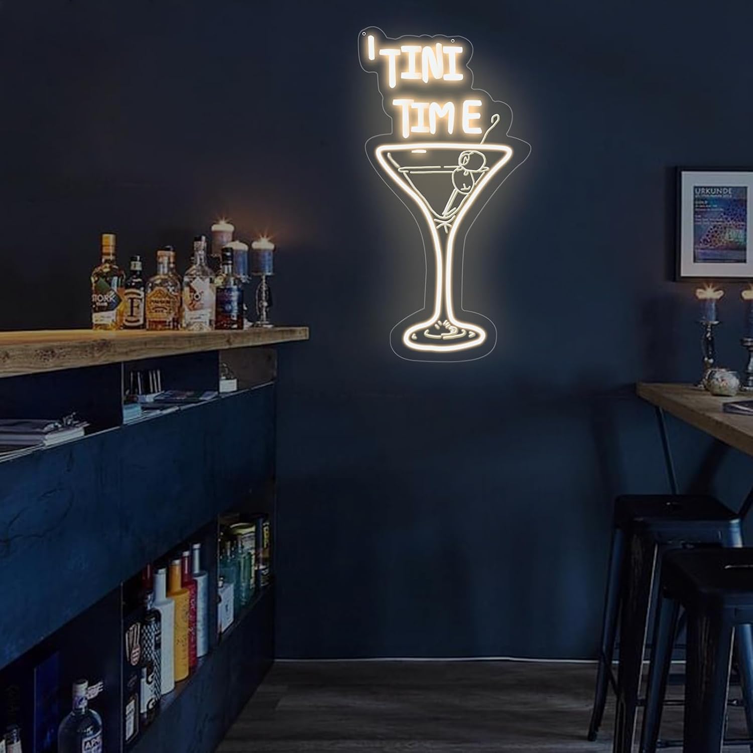 Tini Time Neon Sign, Martini LED Neon Sign for Bars, Elegant Cocktail Glass Neon, Martini Cocktail Bar Wall Decor, Bar Wall Art, Pub neon, 16.5"x8.7", Warm White