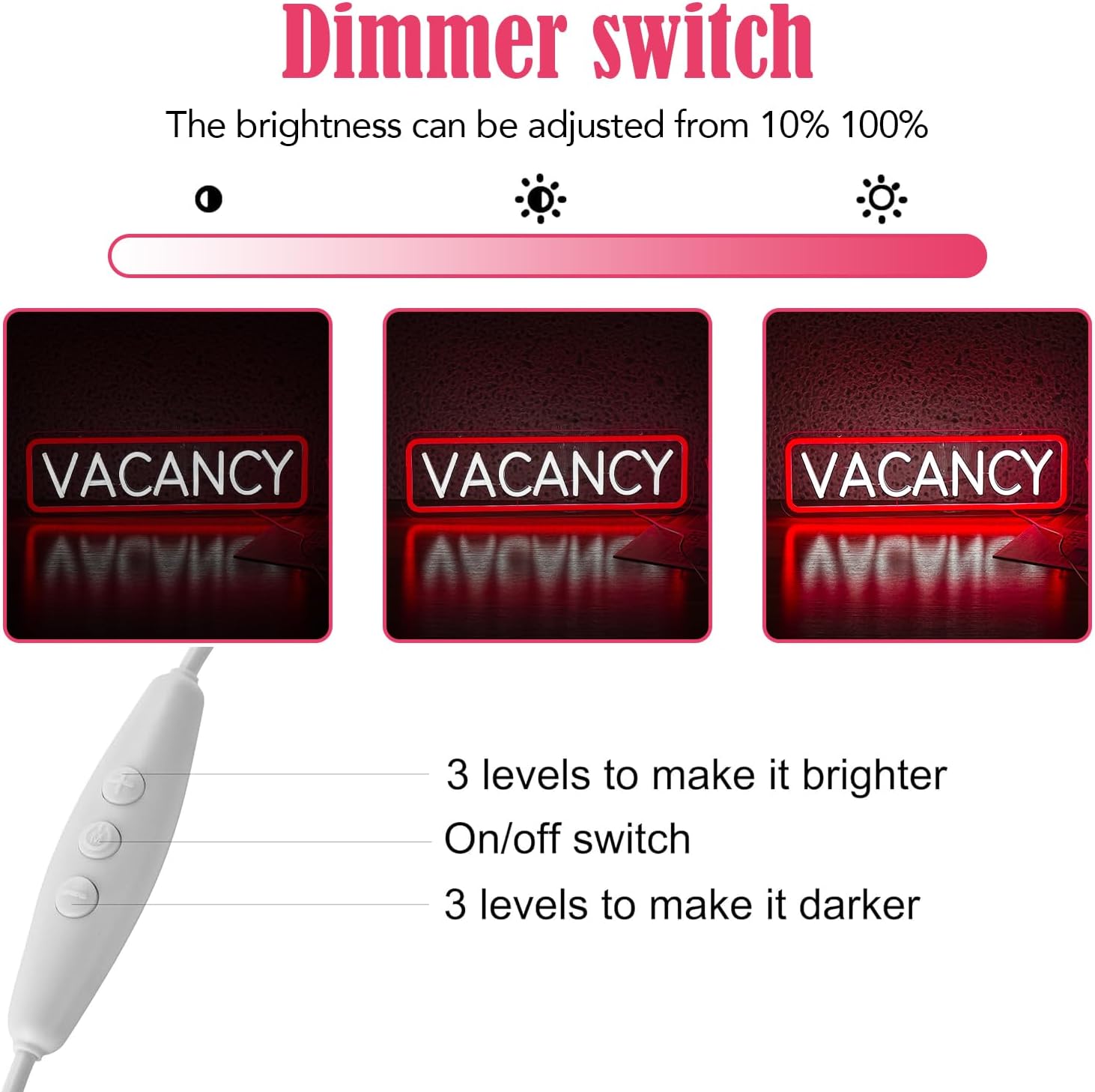 - 【Easy To Install】: It'S Super Easy To Install And Move Around. Neon Sign With Two Pre-Drilled Holes For Easy Wall Hanging, Nails Or Hooks Are Workable. Simply Hang The Neon Light On A Wall And Switch On To Experience A Magical Ambiance.The Neon Lights Has 3 Smart Buttons. The Middle Button Controls The Switch, And The “+” And “-” Buttons Can Adjust The Brightness.