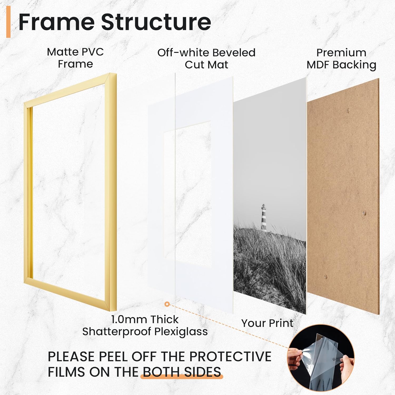 - High-Quality: Our 12x16 picture frame is made of environmentally friendly plastic, strong and durable. With a moisture-proof backplane design, the angle is hand-polished to stop scratching your skin. Use a polished polycarbonate board front to see your photos clearly.