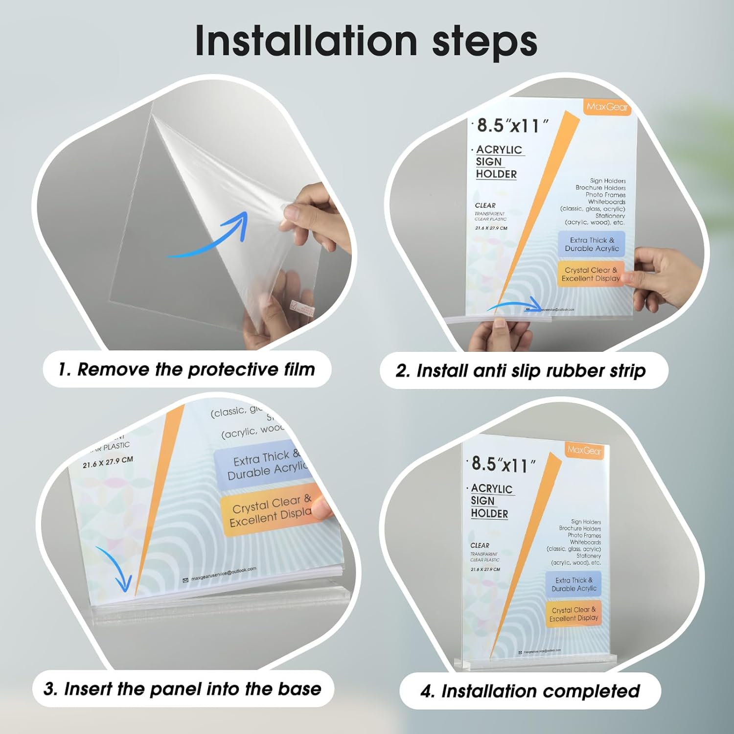 - Premium Acrylic Sign Holders:Warm Tips: Please remember to remove the protective film from the acrylic panel and base before use. This step is crucial for achieving a clearer and more transparent display stand. Our high-quality acrylic material not only enhances the visual appeal of your displayed items but also ensures durability and longevity. Enjoy the full effect of your display with crystal-clear clarity