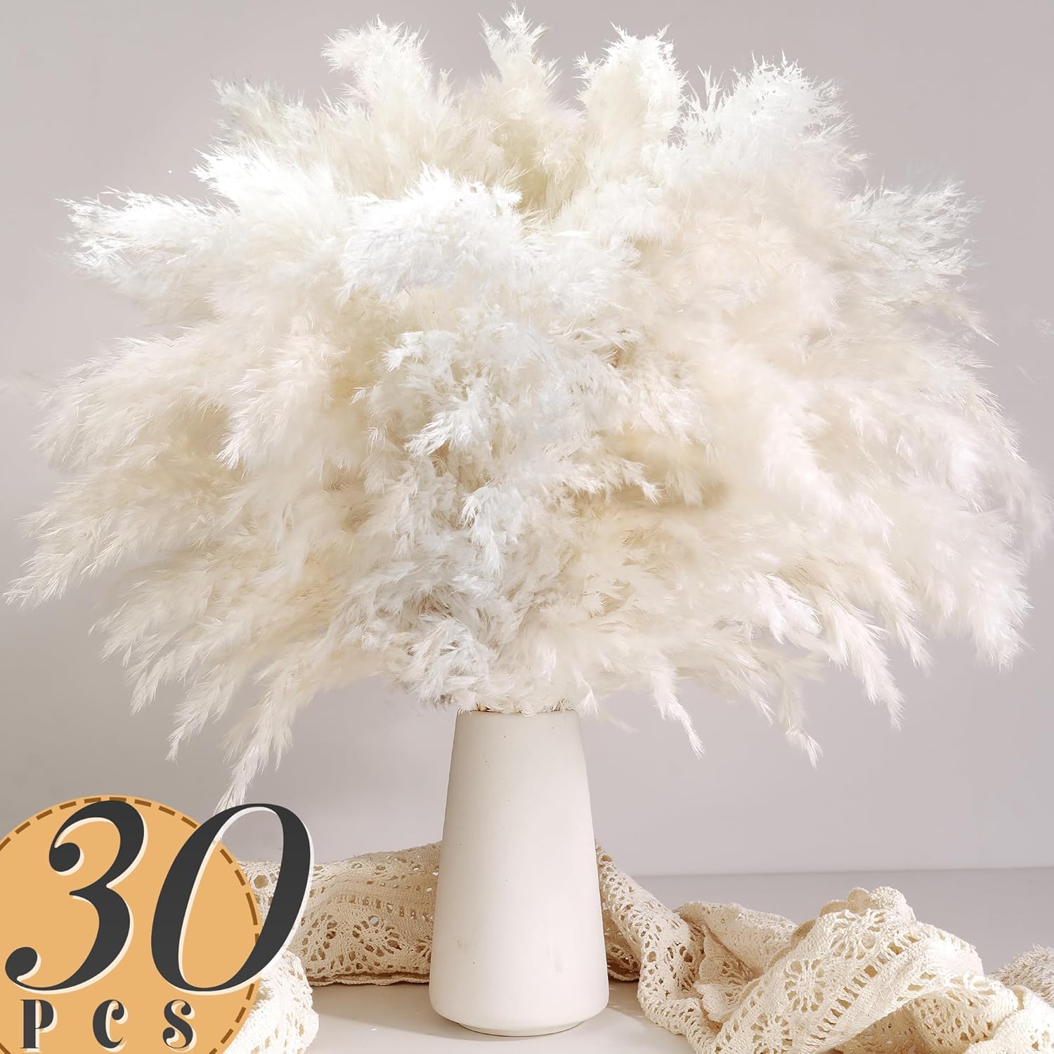 - 30 PCS White Pampas Grass for Home Decor - Elegant Boho Decor - Premium Quality Pampas Grass Stems - Perfect for House, Nursery, Western, Wedding, Table, and Bohemian Decor
