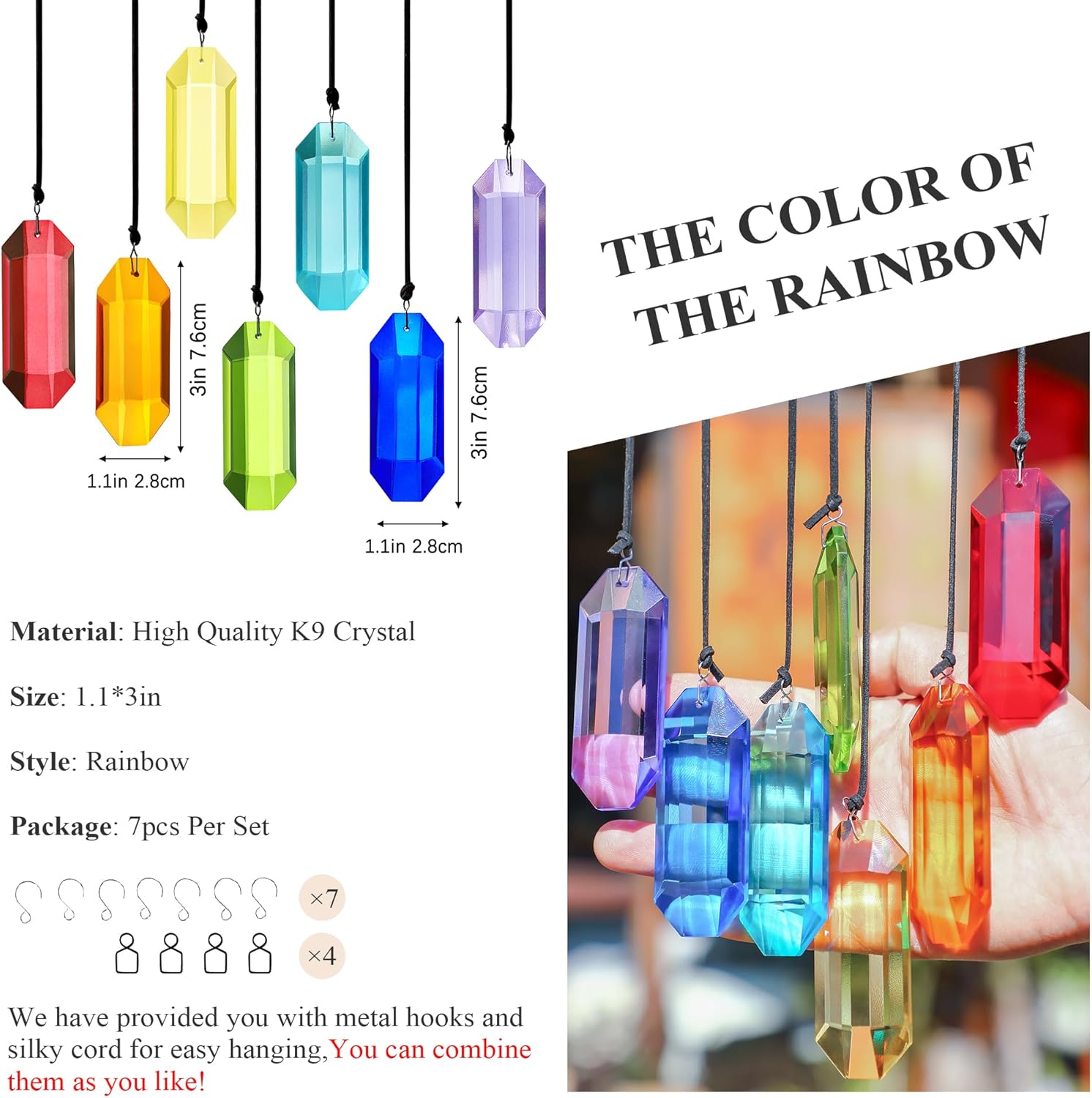 HDCRYSTALGIFTS 7pcs Crystal Suncatcher Prisms 3'' Indoor Window Hanging Ornament Rainbow Glass Prism Sun Catcher Decor for Home Garden Healing Crystals