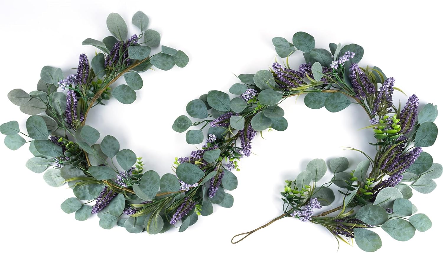 - 【Spring Garland for Decorating】: The garland flower made of Premium Plastic eucalyptus leaves with Purple foam pistil,With wire inside, the garlands for decoration is flexible and easily bent to any shape you want.Bring a touch of purity, romance, elegance, and tranquility to any space with our flower garland.