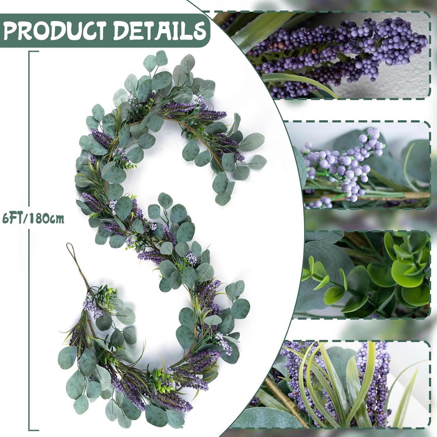 - 【All Season Purple Garland Decor】 The eucalyptus garland is handmade,Designed to fit seamlessly into any season, our Purple garlands for decoration is the perfect year-round decoration.To achieve the perfect shape and arrangement, simply gently expand the flowers and stems as needed