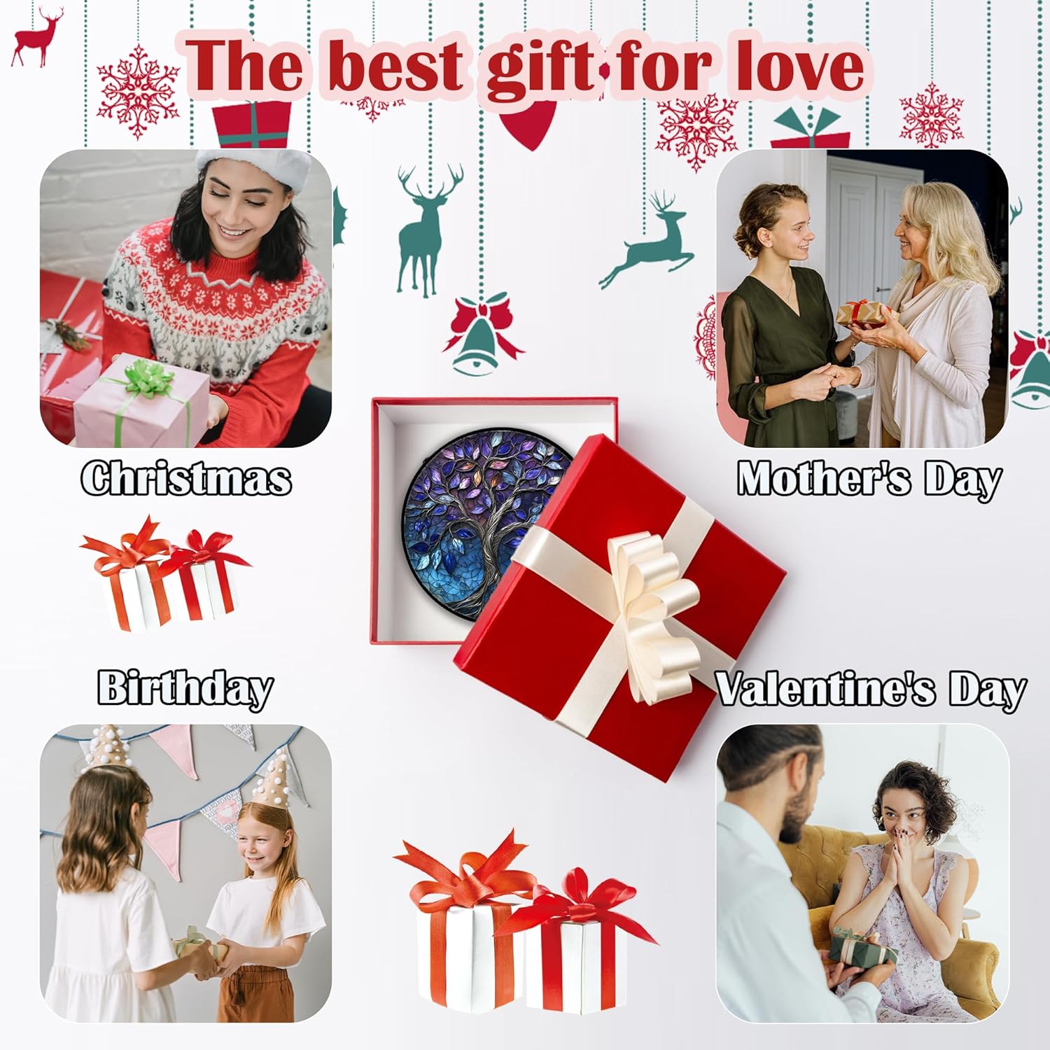 Stained Glass Window Hanging, Blue Purple Tree of Life Sun Catchers Colorful Glass Panel Plants Suncatcher Decor for Birthday for Women,Men,Wife, Lovers, and Mom 7.8 in