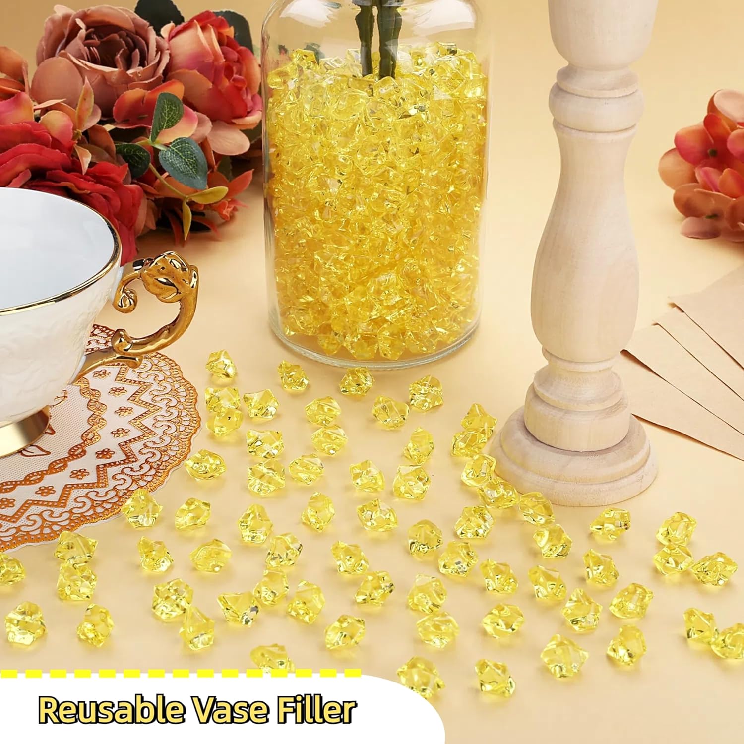 YATOJUZI 500pcs Fake Ice Cubes Yellow Acrylic Crushed Rocks Vase Fillers Plastic Diamonds Gems for DIY Party Wedding Centerpiece Table Scatter Prop Display 0.5" (Only Yellow)