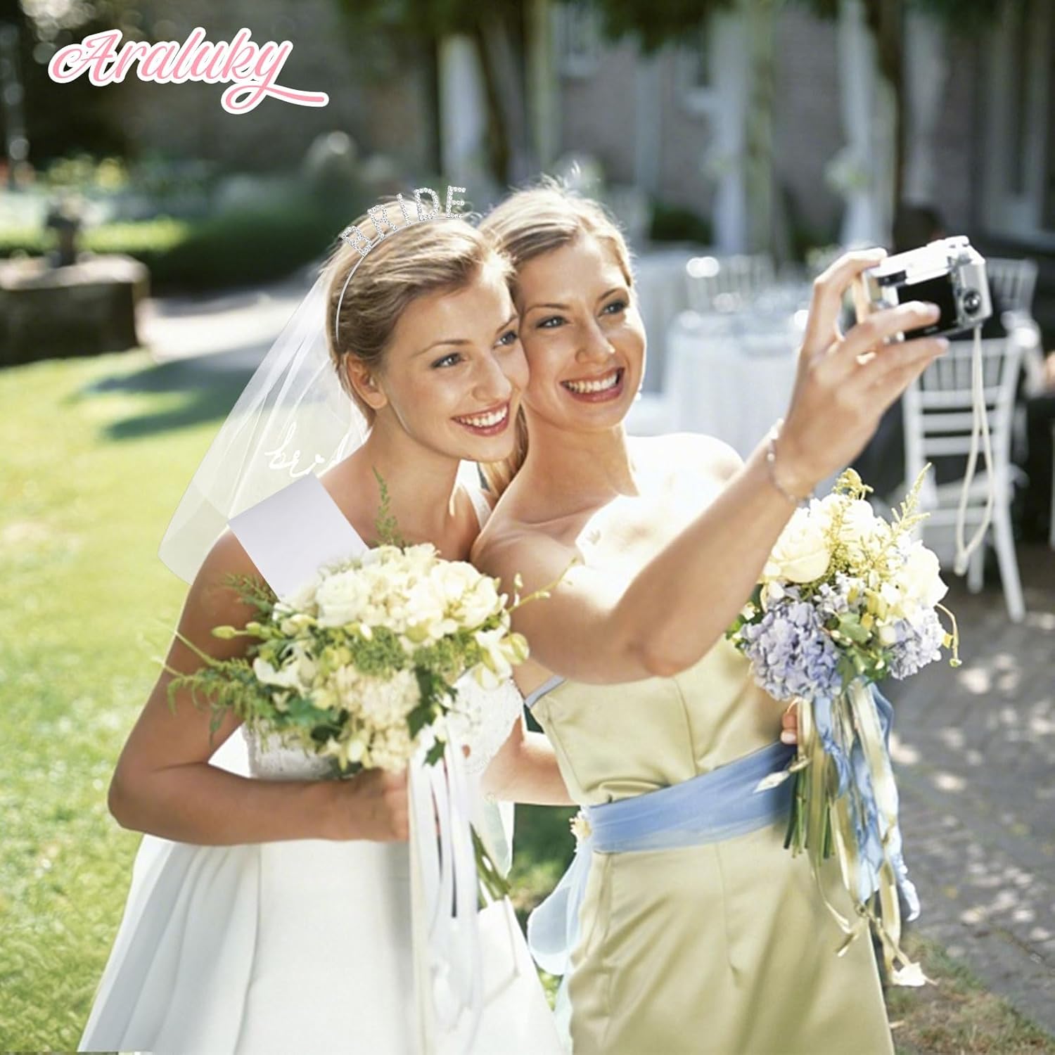 - Package: Bride to be bachelorette party accessories Set includes 1 * rhinestones bride headband, 1* rhinestones Bride to be Sash, and 1 * wedding veils for brides. Make it the most special celebration by using this Stunning bride set to your party as you dance the night away.