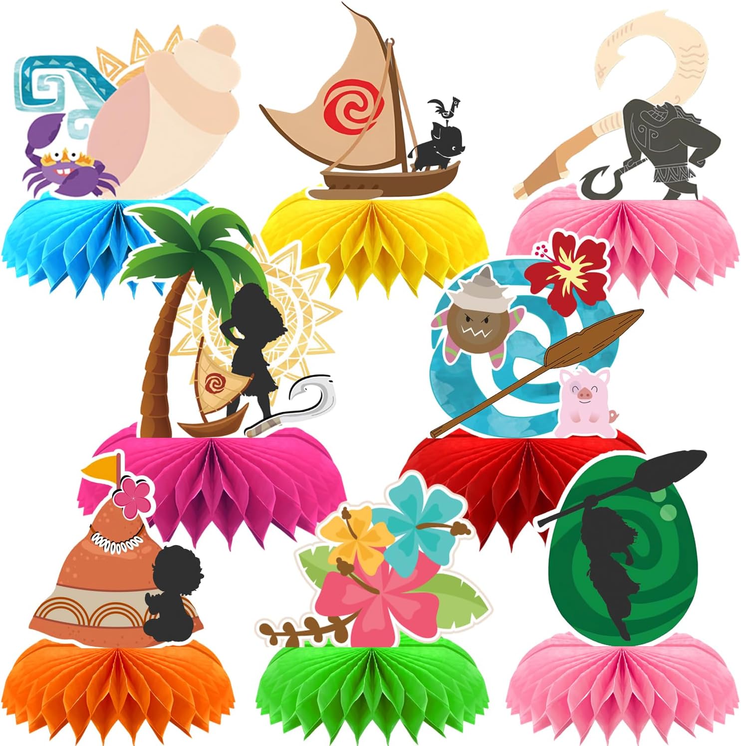 8Pcs Tropical Hawaiian Birthday Party Supplies, Tropical Luau Summer Honeycomb Centerpieces Cartoon Movie Theme 3D Table Decorations