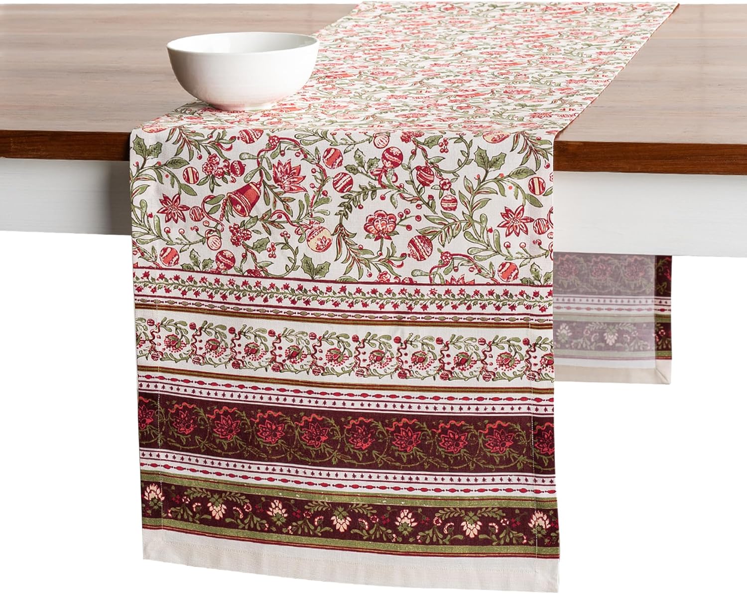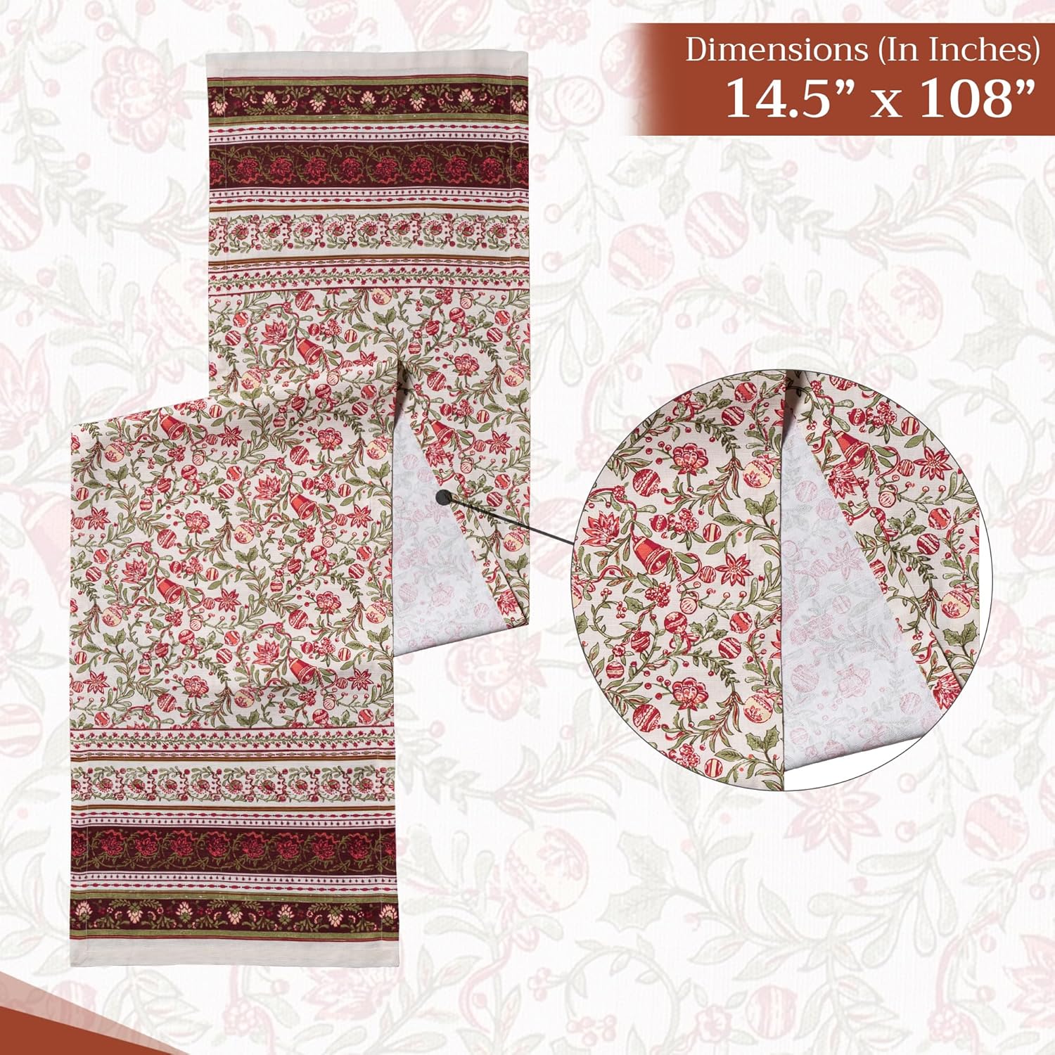 Maison d' Hermine Table Runner 100% Cotton Single Layer Table Runners 108 inches Long for Thanksgiving Christmas Decorations Home Kitchen Dining Party Wedding (Reveillon Au Jardin, 14.5" x 108")