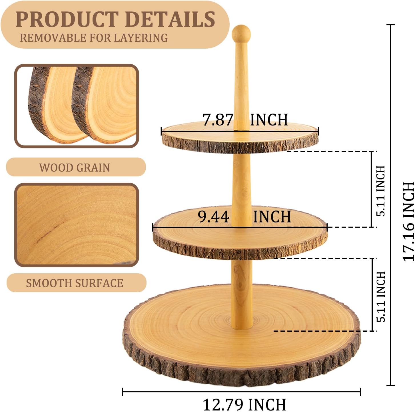 - Elegant Design: This 3-tier cupcake stand boasts a rustic farmhouse style with a distressed wood finish, perfect for displaying your delectable treats in a charming and eye-catching manner.Natural Rustic Charm: Crafted from premium paulownia wood with intact bark, this 3-tier cupcake stand exudes a natural and rustic vibe, perfect for woodland-themed events and farmhouse decor.