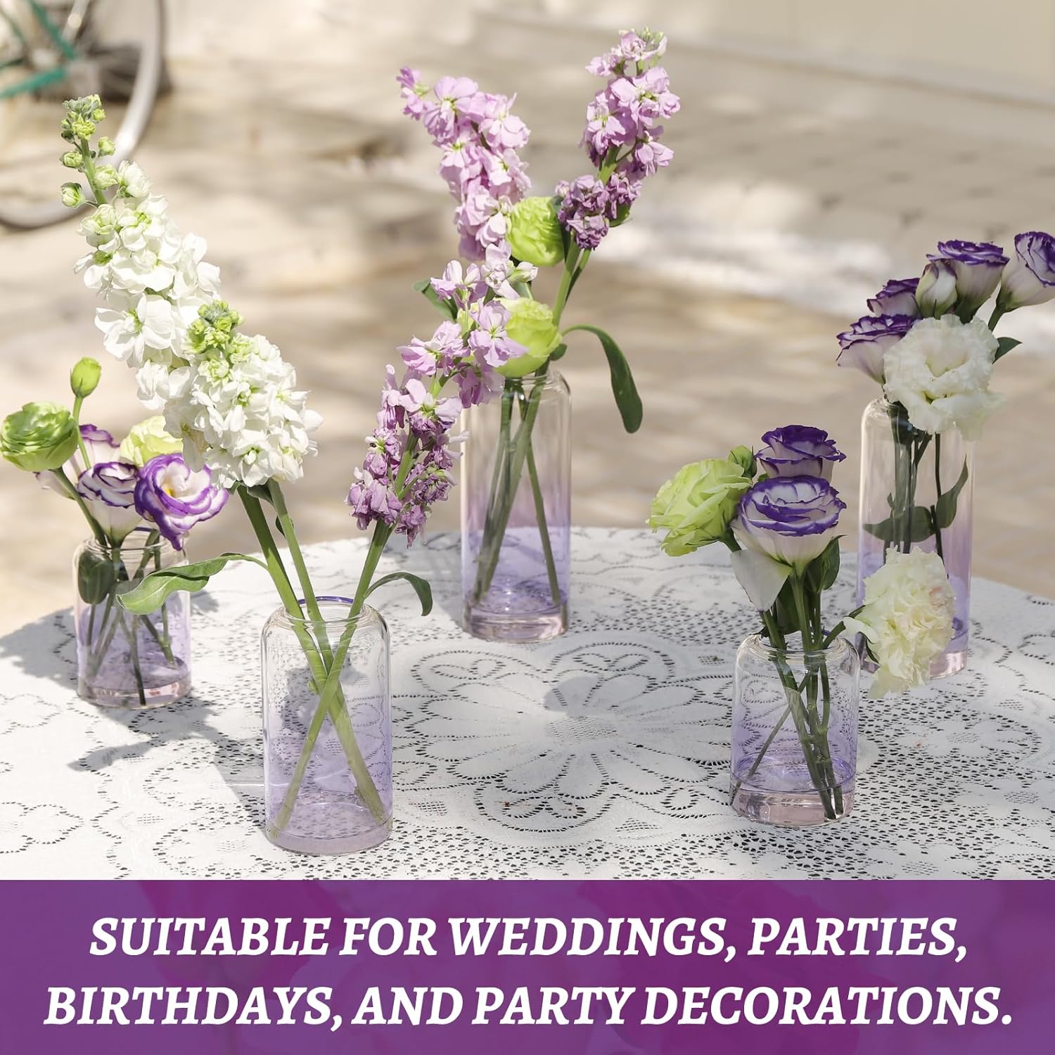 - Quality & Safety: Purple glass bud vases is made of selected premium thick borosilicate glass, hand-blown to a bright and high transparent finish with durable and sturdy. The top of the vase is smooth with no sharp edges, ensuring safety during the flower arrangement process. Note: Remember to add an appropriate amount of water according to the quantity and weight of the flowers for stability.