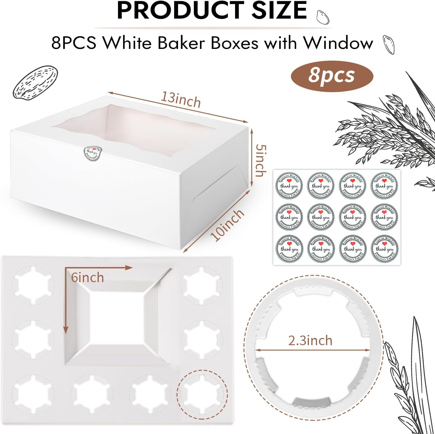 - Package Includes:8 Packs Cake and Cupcake Box Combo with Clear Window.cupcake boxes + inserts+ Stickers.The paper inserts keep the cupcakes stay in place from moving around. The cake box has a wide viewing angle, perfect for showcasing cakes while protecting them. It is a great choice for making cupcakes and pastries.