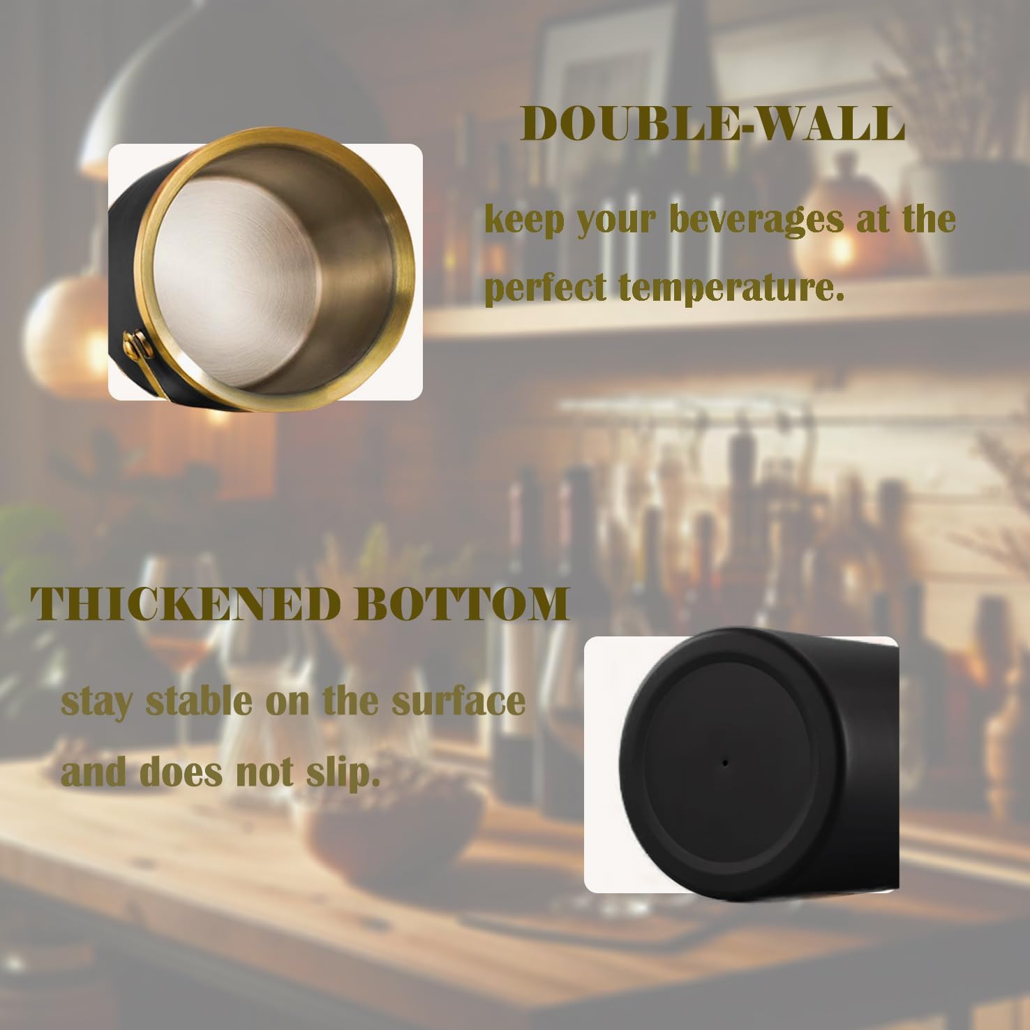 - DOUBLE WALL ICE BUCKET: This stainless steel ice bucket is equipped with insulation technology, ensuring the optimal temperature of your beverages and ice for an extended period. With its thermal retention, this bucket prevents ice from melting quickly and keeps your drinks refreshingly chilled.