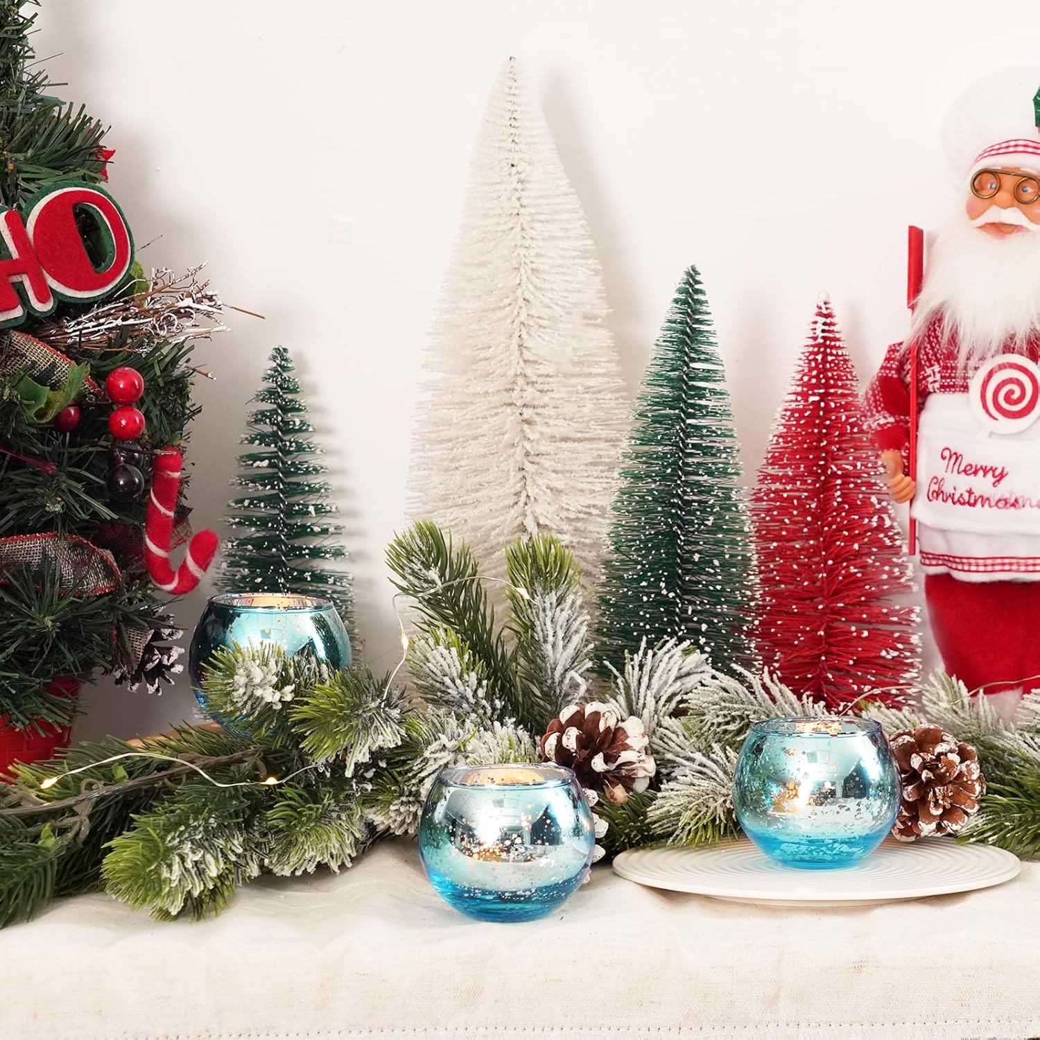 Homemory 12 Pcs Blue Votive Candle Holders, Round Mercury Glass Candle Holder, Tealight Candle Holders for Table Centerpieces, Baby Showe, Anniversary, Wedding, Home Decor, Halloween, Christmas
