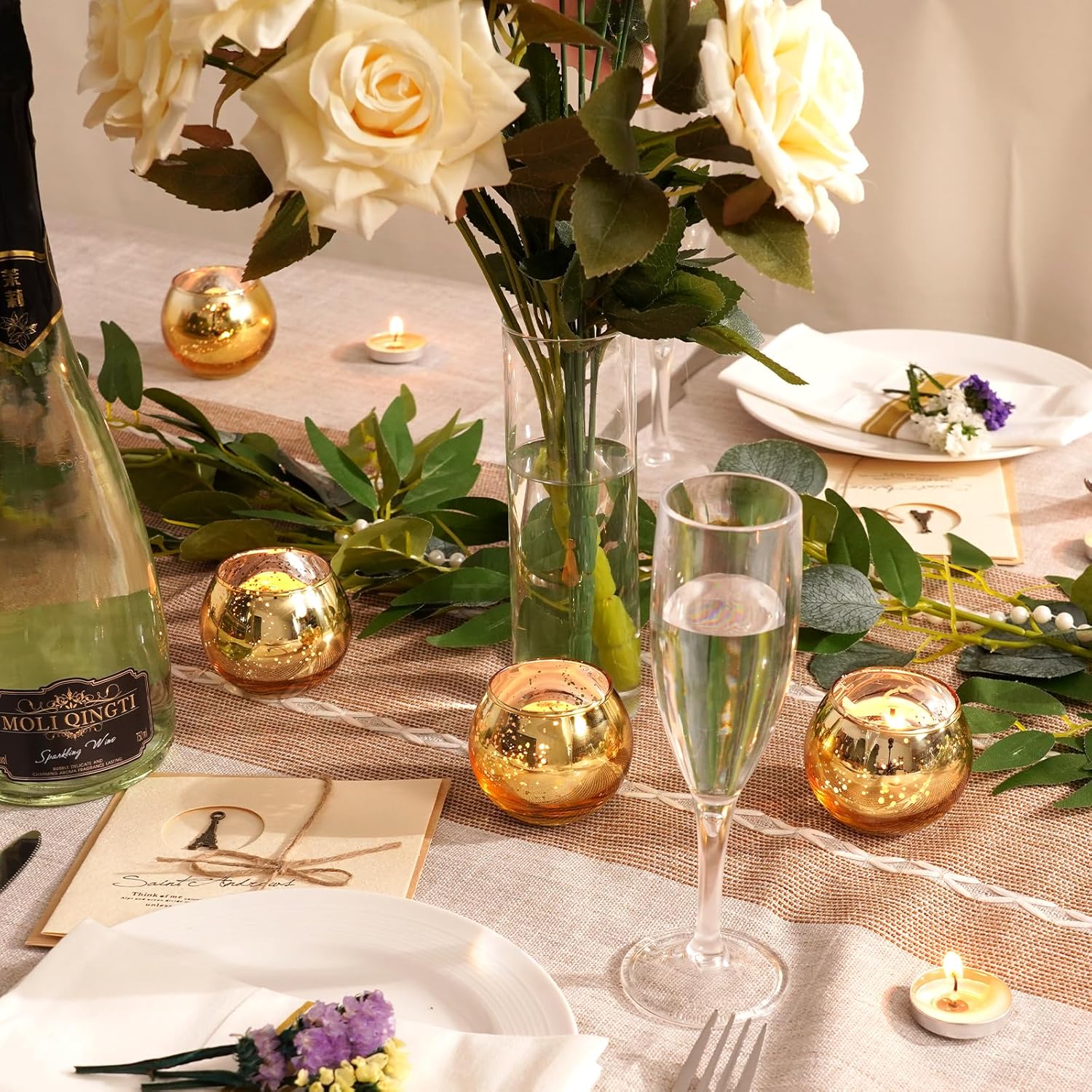 - Elevate Your Ambiance: Our stunning set of 12 gold mercury glass votive candle holders adds a dazzling touch to any setting. Light them up to watch the flickering glow dance, creating a cozy and elegant atmosphere perfect for gatherings, romantic dinners, or peaceful meditation