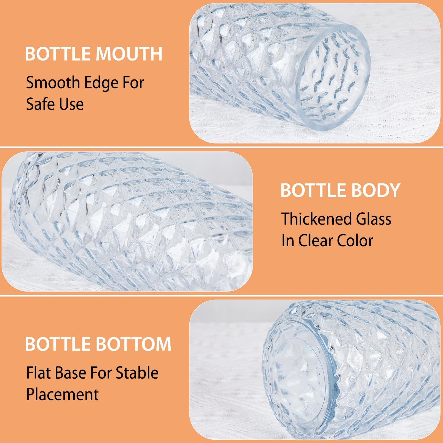 - 【 Quality Material 】This small floral vase is made of thick and sturdy glass, with a smooth surface and mouth in touch and easy to clean. The bottom of the glass vases is also treated with anti slip workmanship, making it safe for long time use