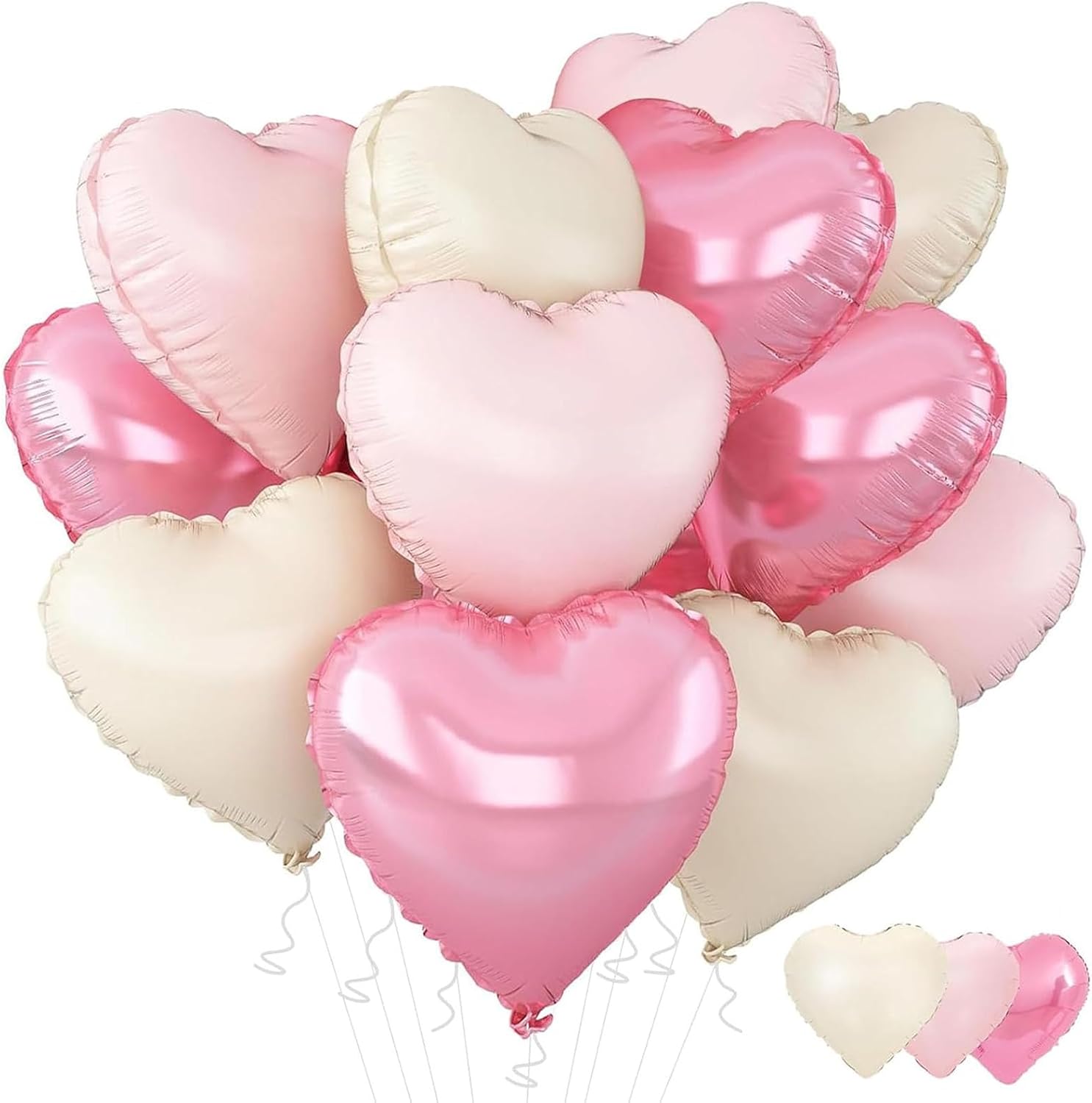 - 12PCS Heart-Shaped Foil Balloons: Package include 4pcs baby pink heart foil balloons,4pcs light pink heart foil balloons, 4pcs cream white heart foil balloons. The baby pink cream white heart shaped balloons suitable for any party, can leave unforgettable memories for the guests attending the party