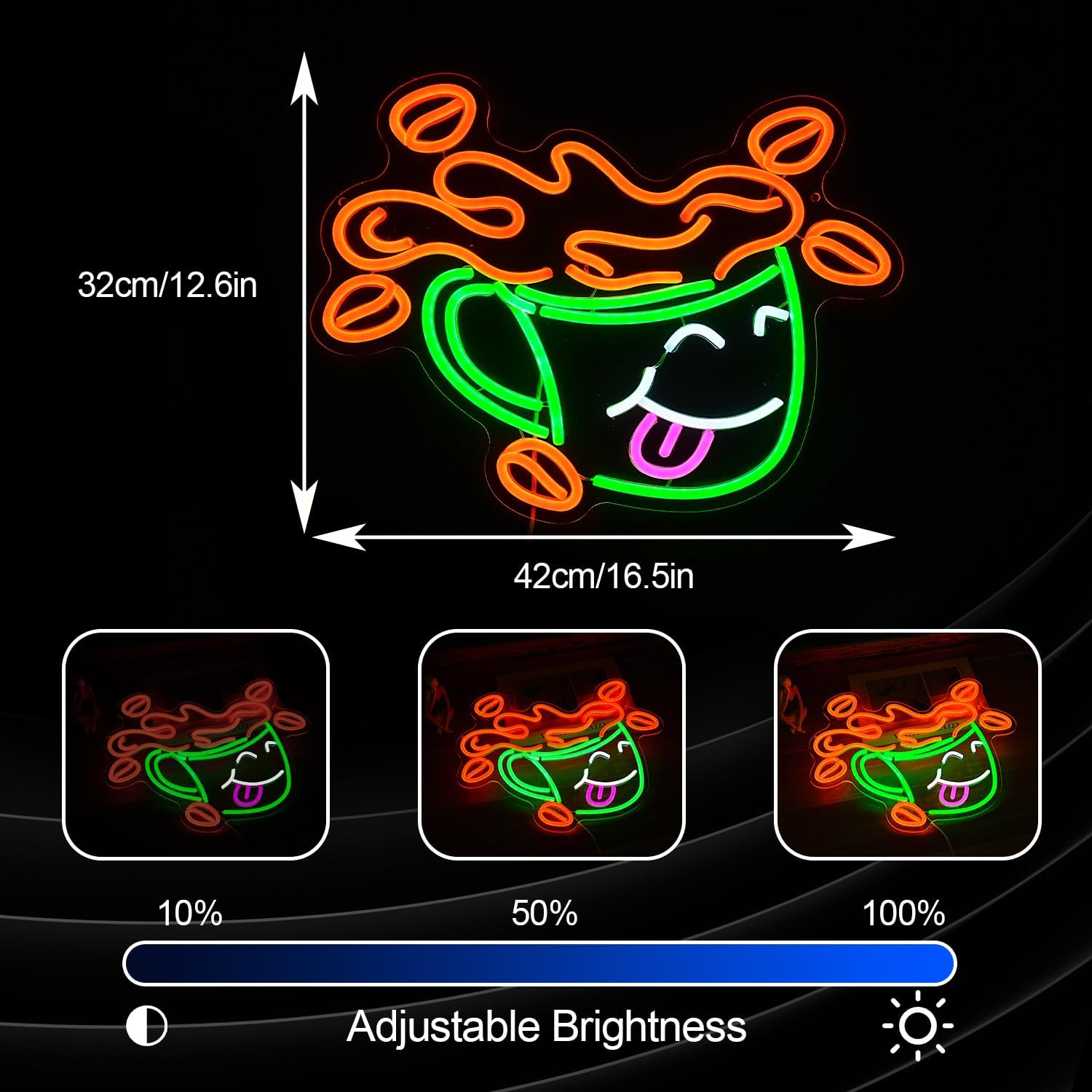 - Coffee Neon Sign: The curve of the coffee cup handle, the design of the coffee at the cup mouth and the surrounding coffee beans highlight the quality and freshness of the coffee, making this neon light more realistic and attractive