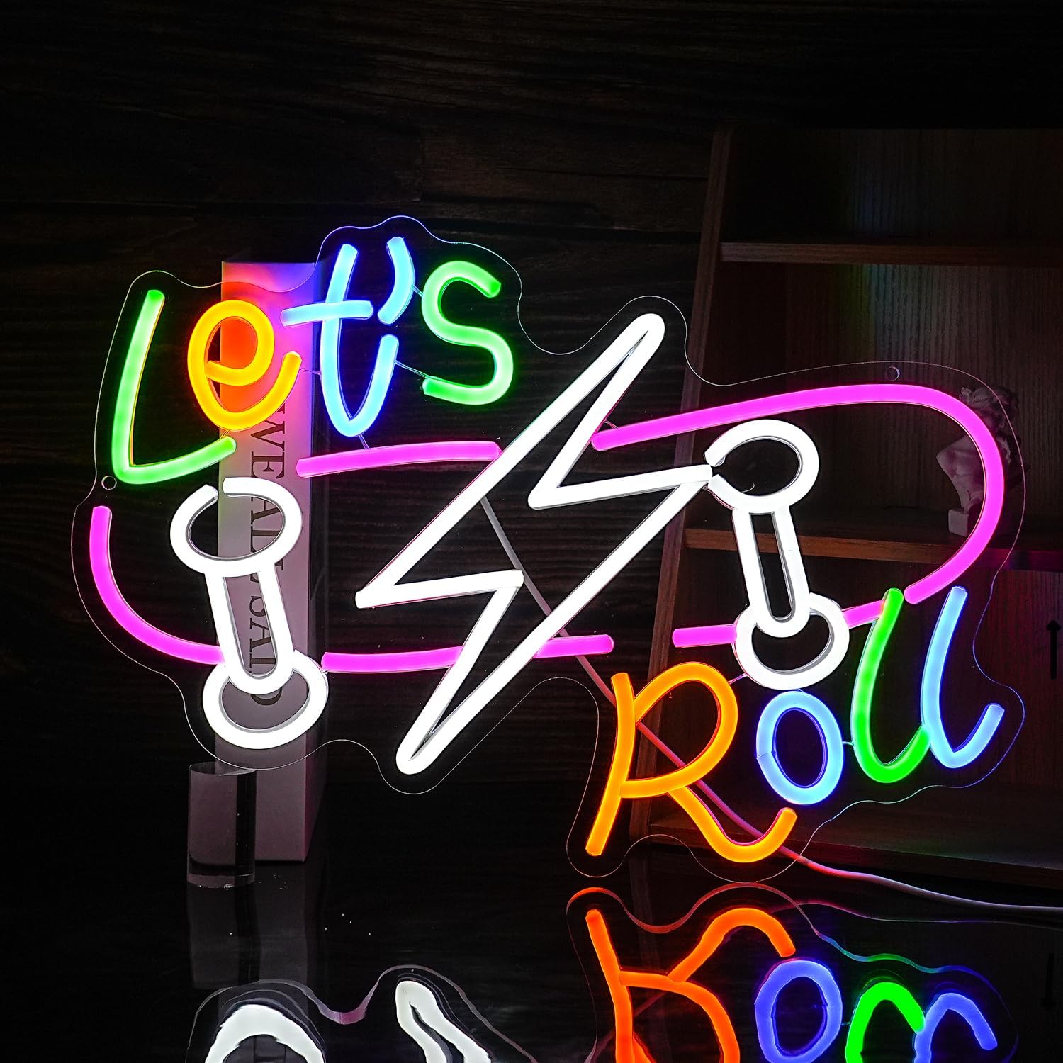 - Let’s Roll: The neon sign that combines Let's Roll and skateboarding elements embodies vitality, adventure, and sportsmanship. The bright and colorful colors also show the vitality and passion of skateboarding culture, which is very attractive to skateboarding enthusiasts and sports enthusiasts
