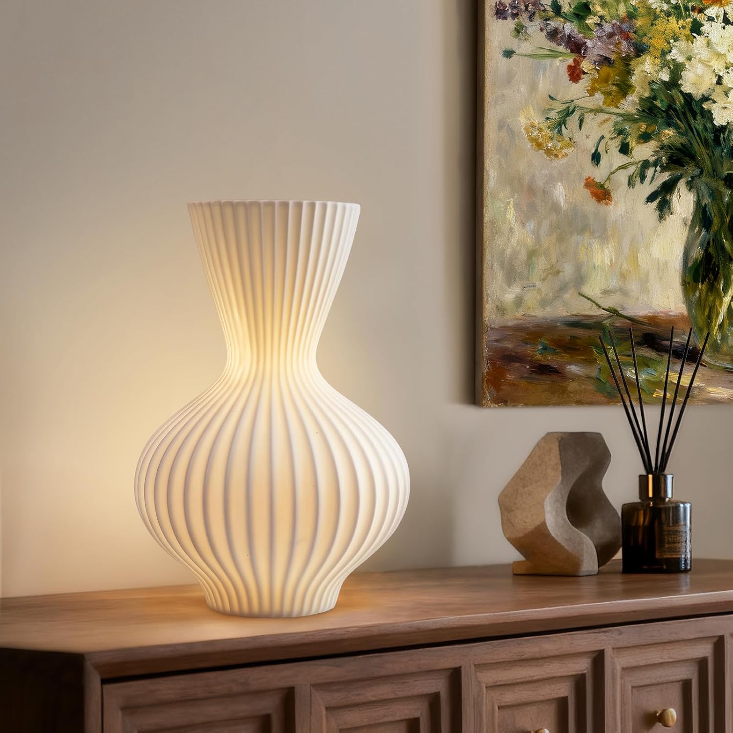 - Eco-Friendly Design: Crafted with natural, inorganic materials, this ceramic table lamp not only enhances any room's atmosphere with a warm, ambient glow but also supports an eco-conscious lifestyle by minimizing environmental impact while providing soft, lighting for relaxing.