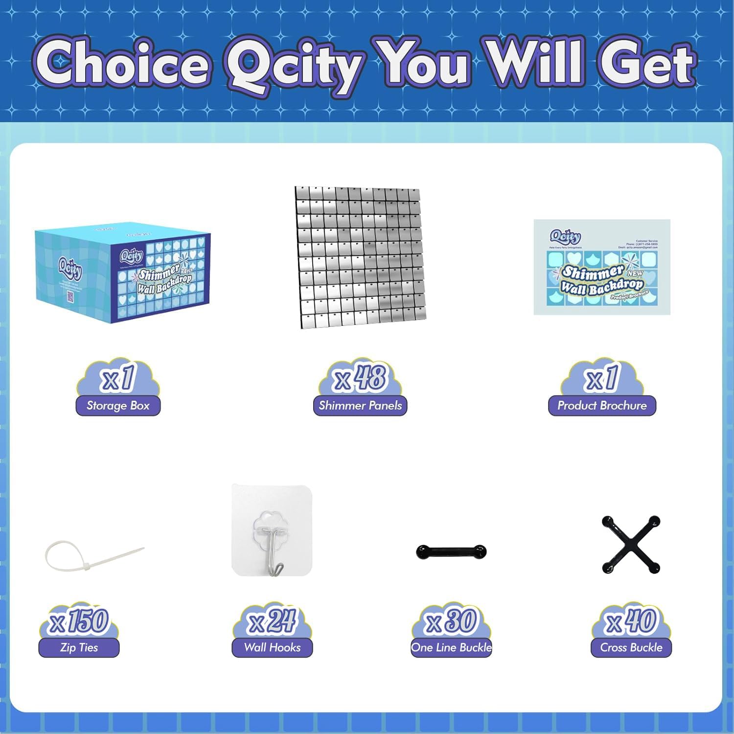 - Complete Kit: Each package includes 48 sequin wall panels (12"x12" each), along with 150 zip ties, 24 wall hooks, 30 single-line buckles, 40 cross buckles, and an installation manual. (Backdrop stand not included.)