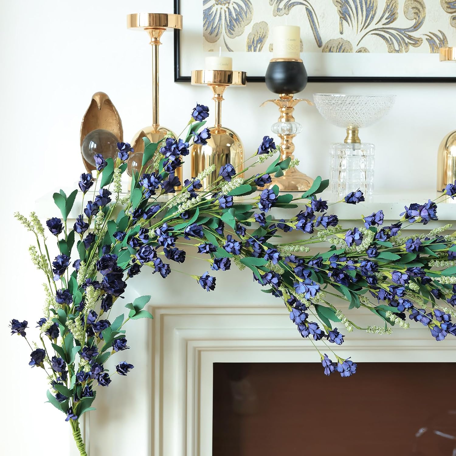 Mizii Blue Artificial Flower Garland 6FT Fake Wildflower Floral Garland Hanging Vines Spring Summer Flowers Decorations for Mantle Table Centerpieces Room Wall Fireplace Wedding Decor (Navy Blue)
