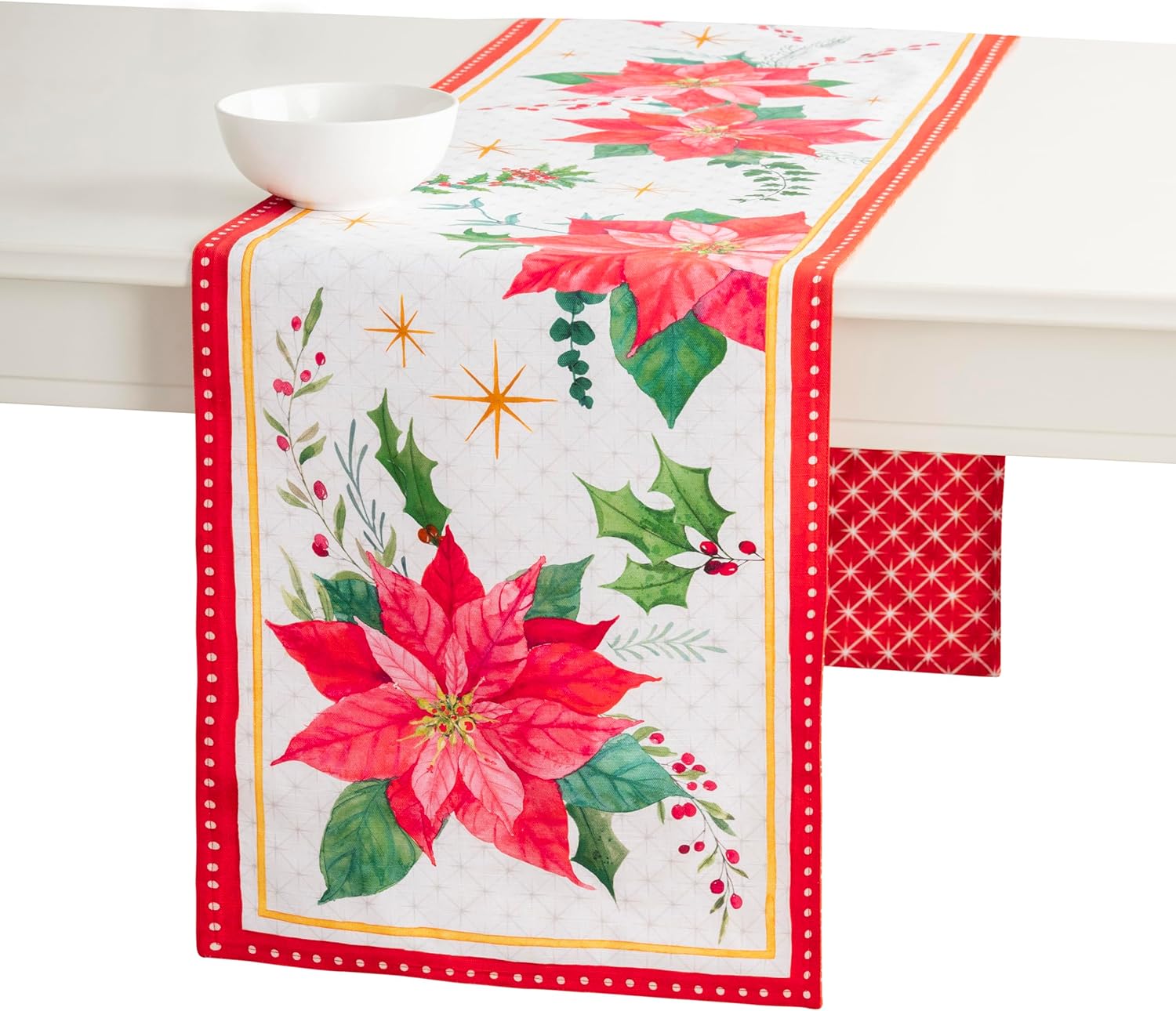 Maison d' Hermine Table Runner 100% Cotton Double Layer Table Runners 72 inches Long for Thanksgiving Christmas Decorations Home Kitchen Dining Party Wedding (Poinsettia Christmas, 14.5" x 72")