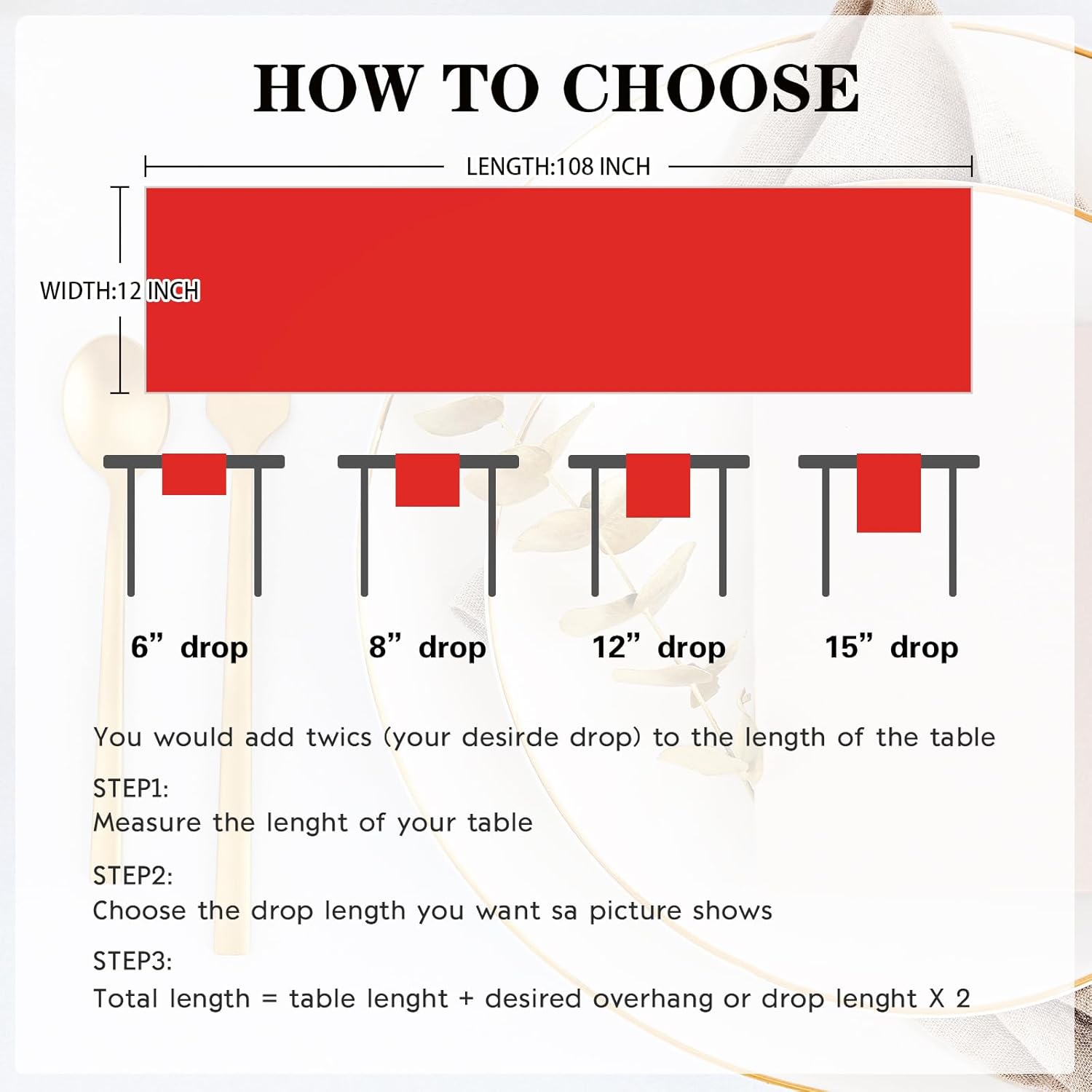 - Package Include: Each red satin table runner measures 12" x 108", total 10 packs, which is appropriate for rectangle or round tables that can seat 8-10 people.