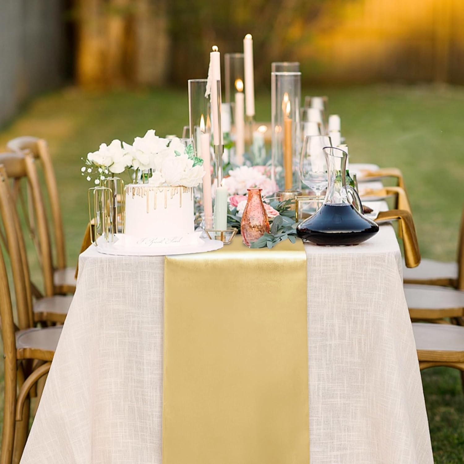 - Package Include: Each light gold satin table runner measures 12" x 108", total 10 packs, which is appropriate for rectangle or round tables that can seat 8-10 people.