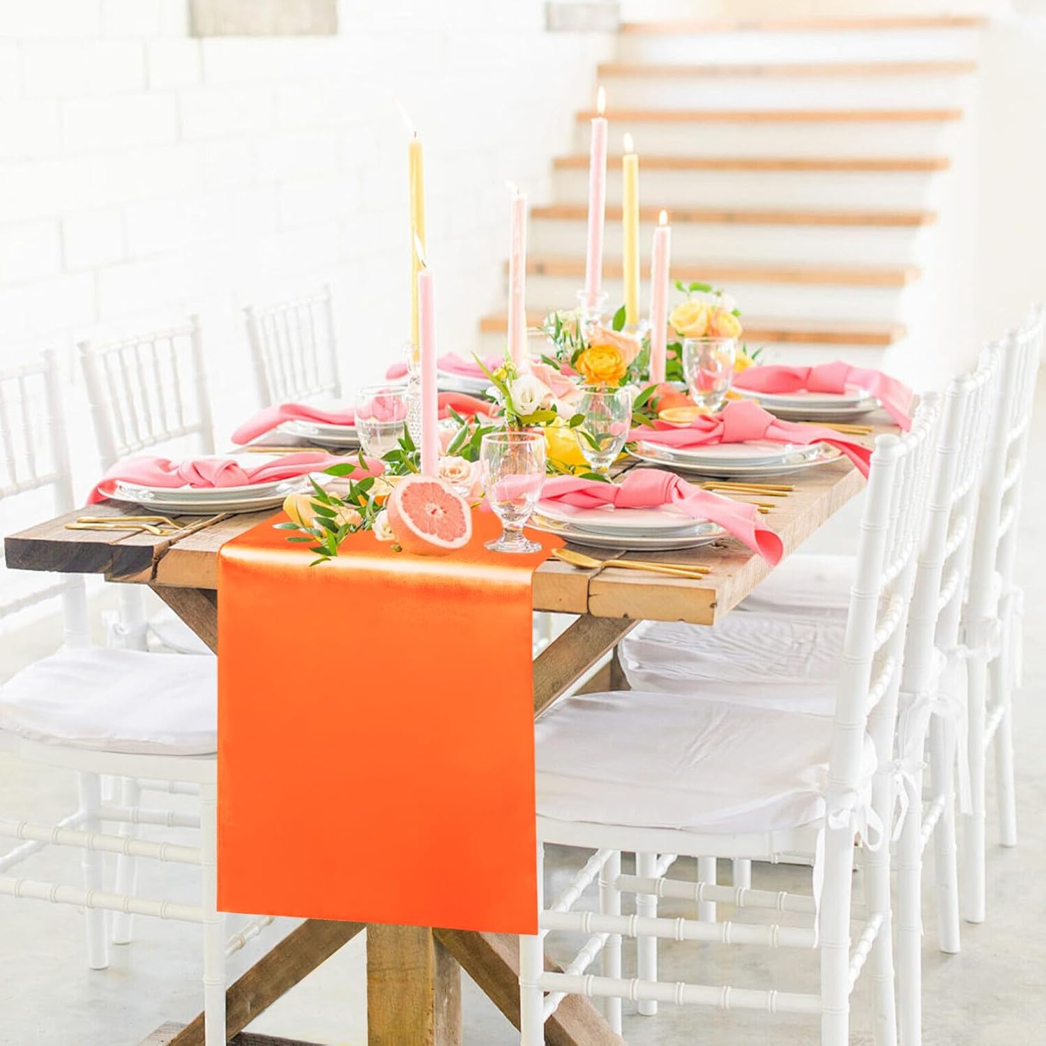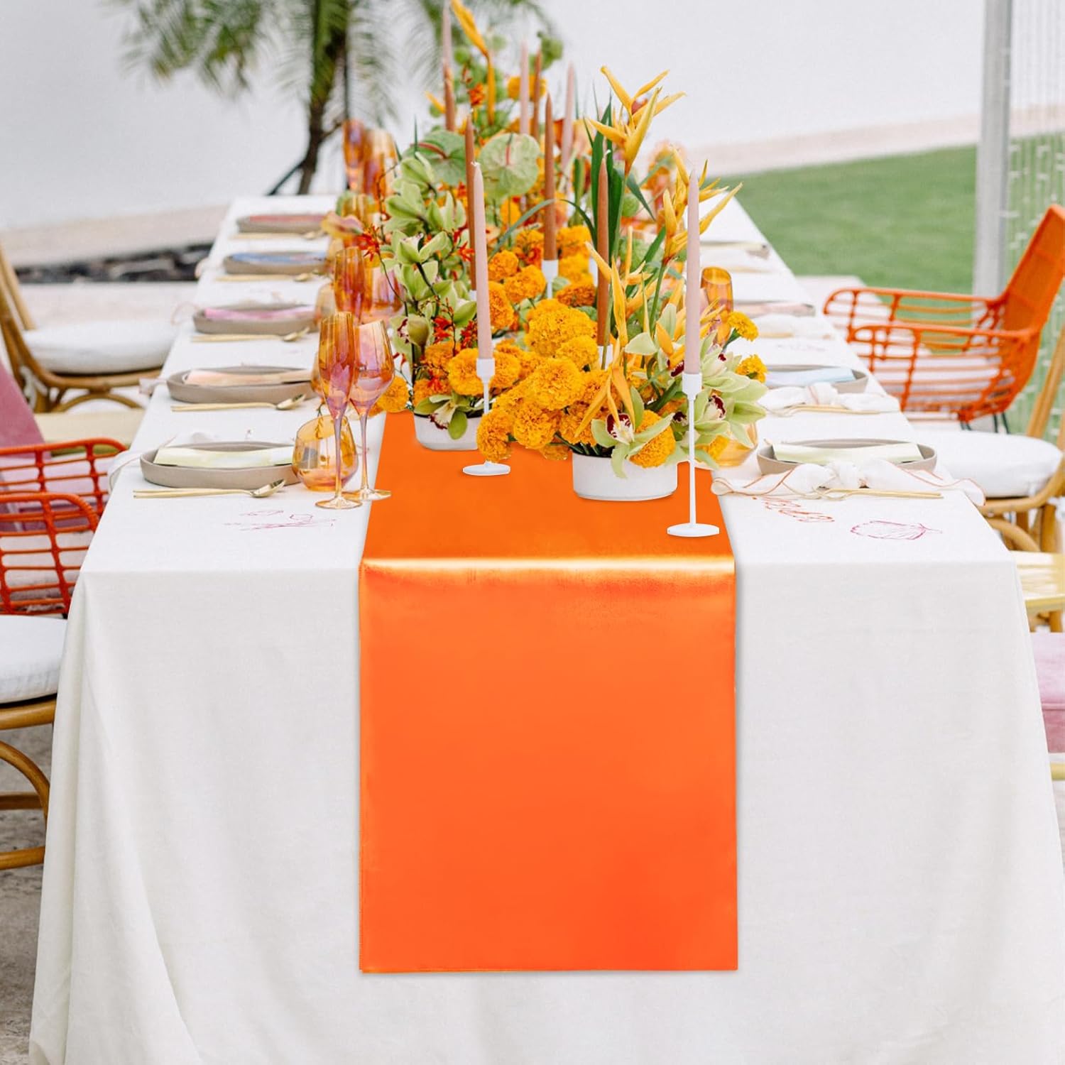 10 Pack Satin Table Runner 12 x 108 Inch Long Orange Silk Table Runner for Wedding Party Banquet Birthday Decoration