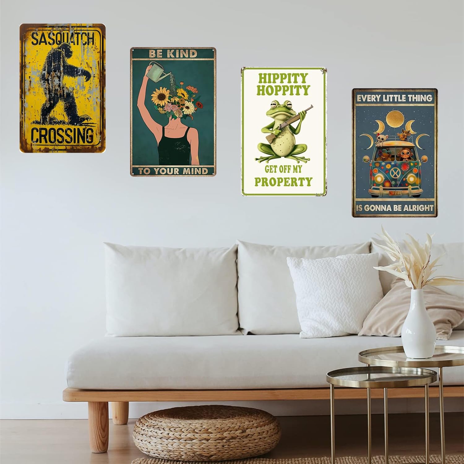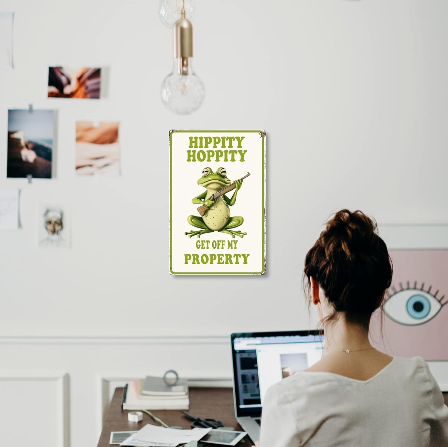 Funny Frog Room Sign - "Hippity Hoppity Get Off My Property" No Trespassing Warning Sign, Vintage Metal Tin Wall Décor, 8" x 12" for Bedroom, Door, Home
