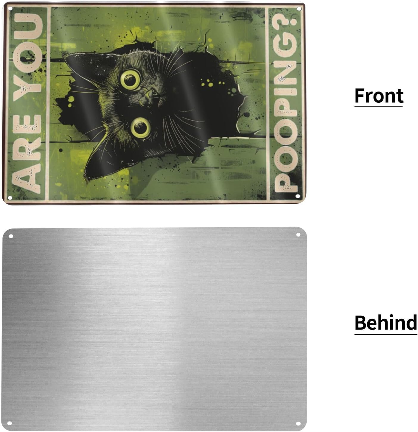 Funny Black Cat "Are You Pooping?" Tin Sign - Humorous Bathroom Wall Décor, 8x12 Inches, Vintage Metal Sign for Indoor & Outdoor Use, Cat Wall Art