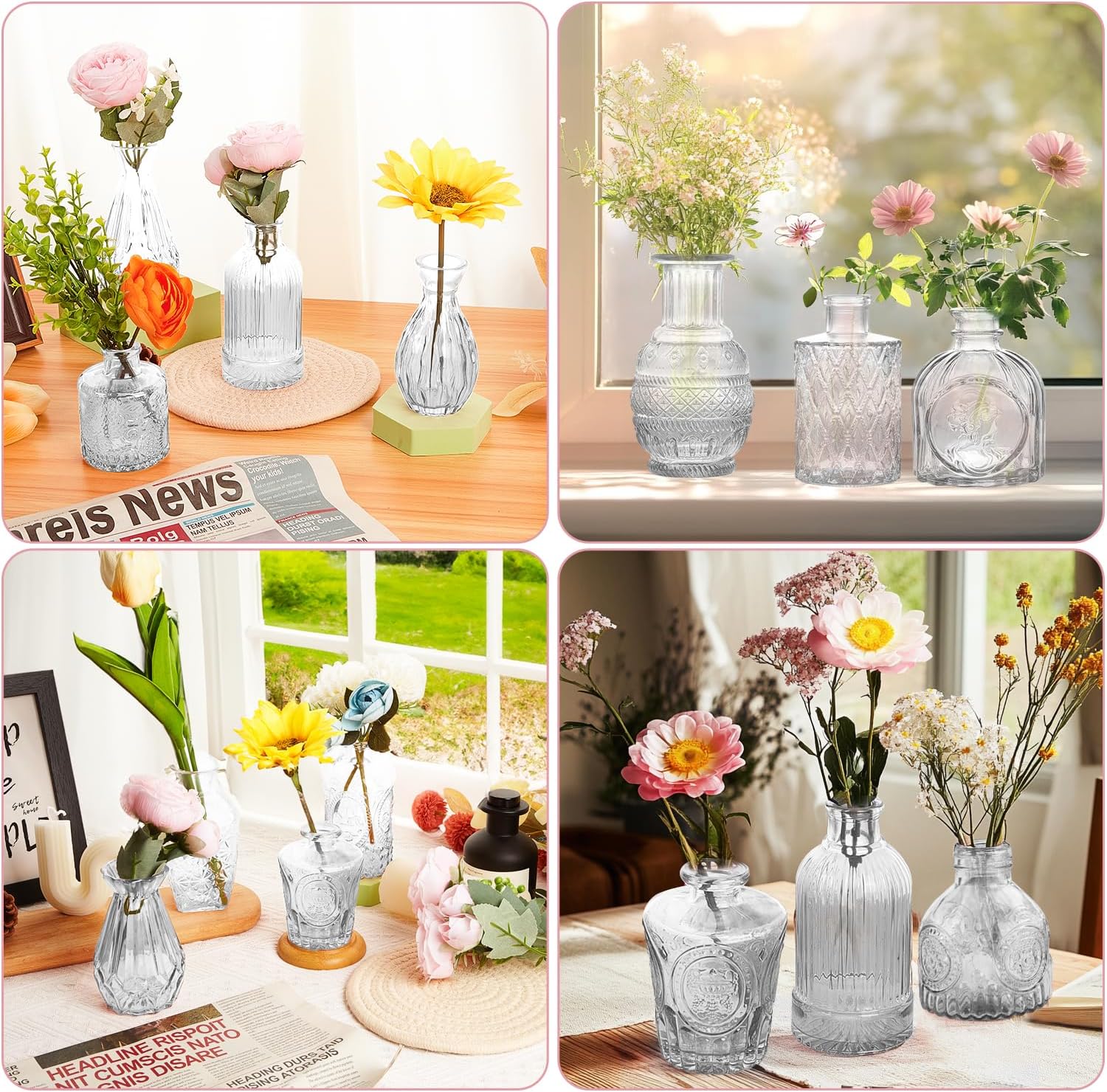 - 【 Elegant Mini Bud Vases Set 】Upgrade your decor with this 30-pieces small flower vases for tables, crafted from premium glass vases with a vintage-inspired design. Perfect for creating centerpieces for tables, wedding decor, or adding a romantic touch to shelves and mantels